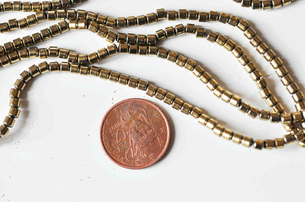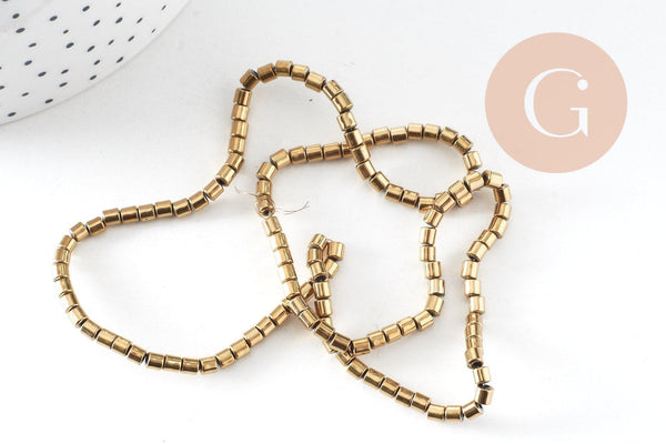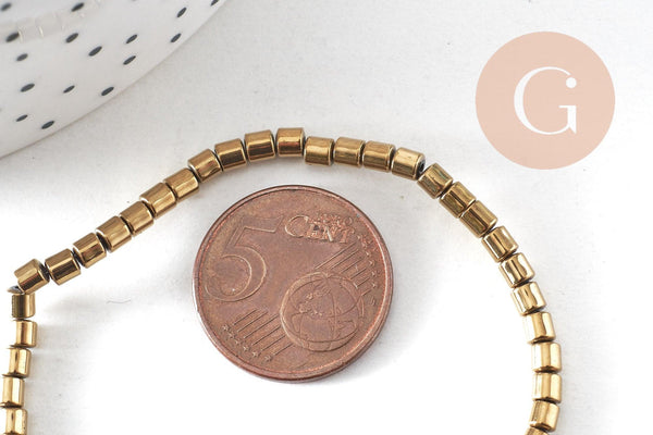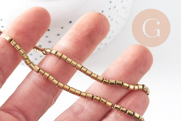 Cuentas de hematita dorada de 3,5 mm, cuentas de columna de piedra, tira de 120 cuentas, x1 (G4429)