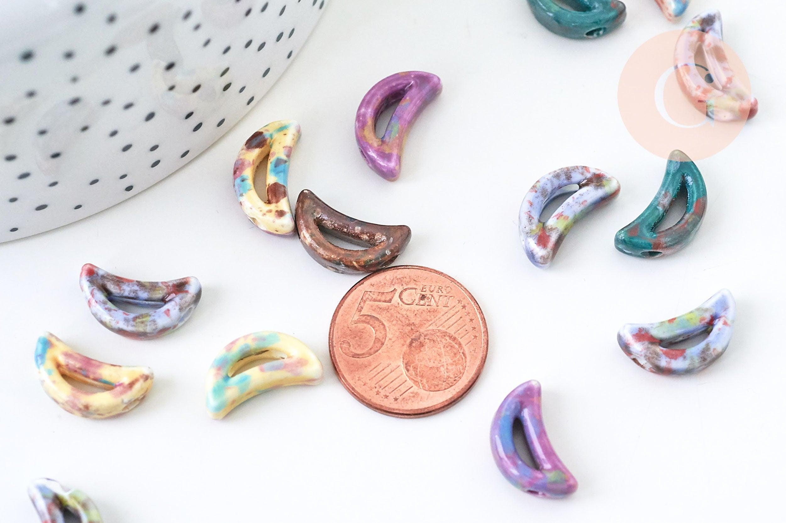 Bonitas cuentas de luna de cerámica hechas a mano y esmaltadas en múltiples colores.