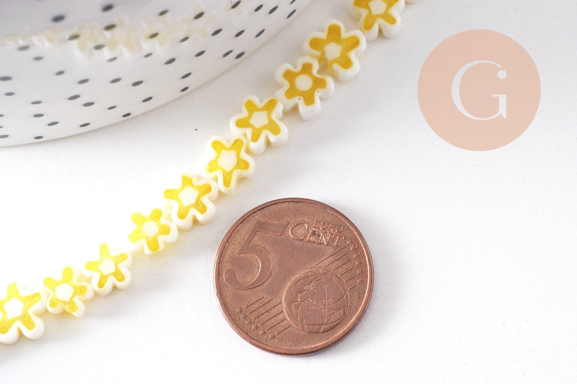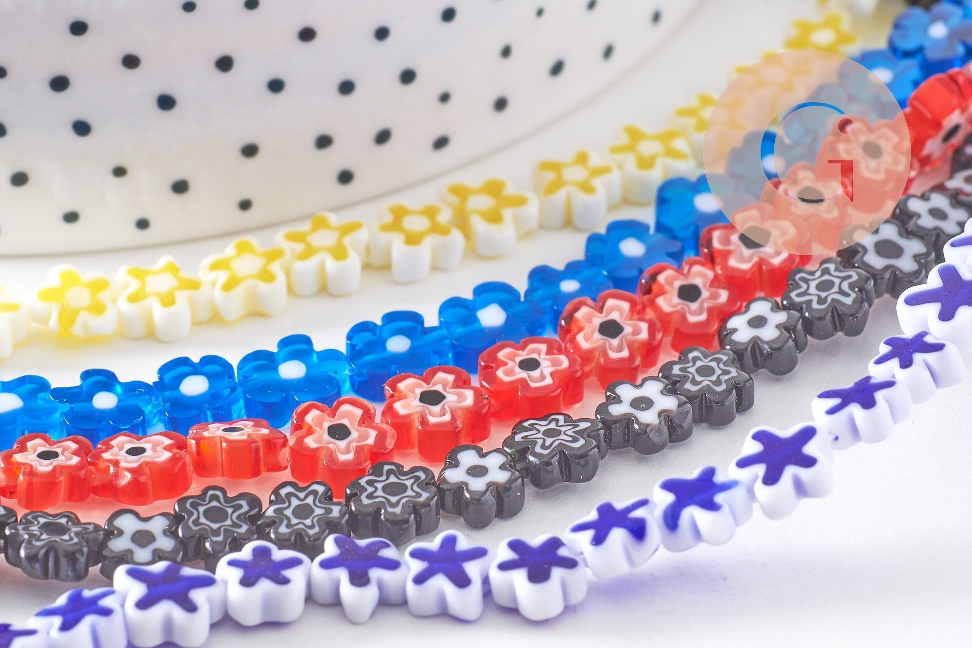 Cuentas de flores de vidrio millefiori de 6,5-9 mm hechas a mano para agregar color y ligereza a tus creaciones de joyería. Cada cuenta está hecha a mano y ofrece una combinación única de colores y un diseño floral que agregará un toque artesanal a tus pulseras, collares y aretes DIY.