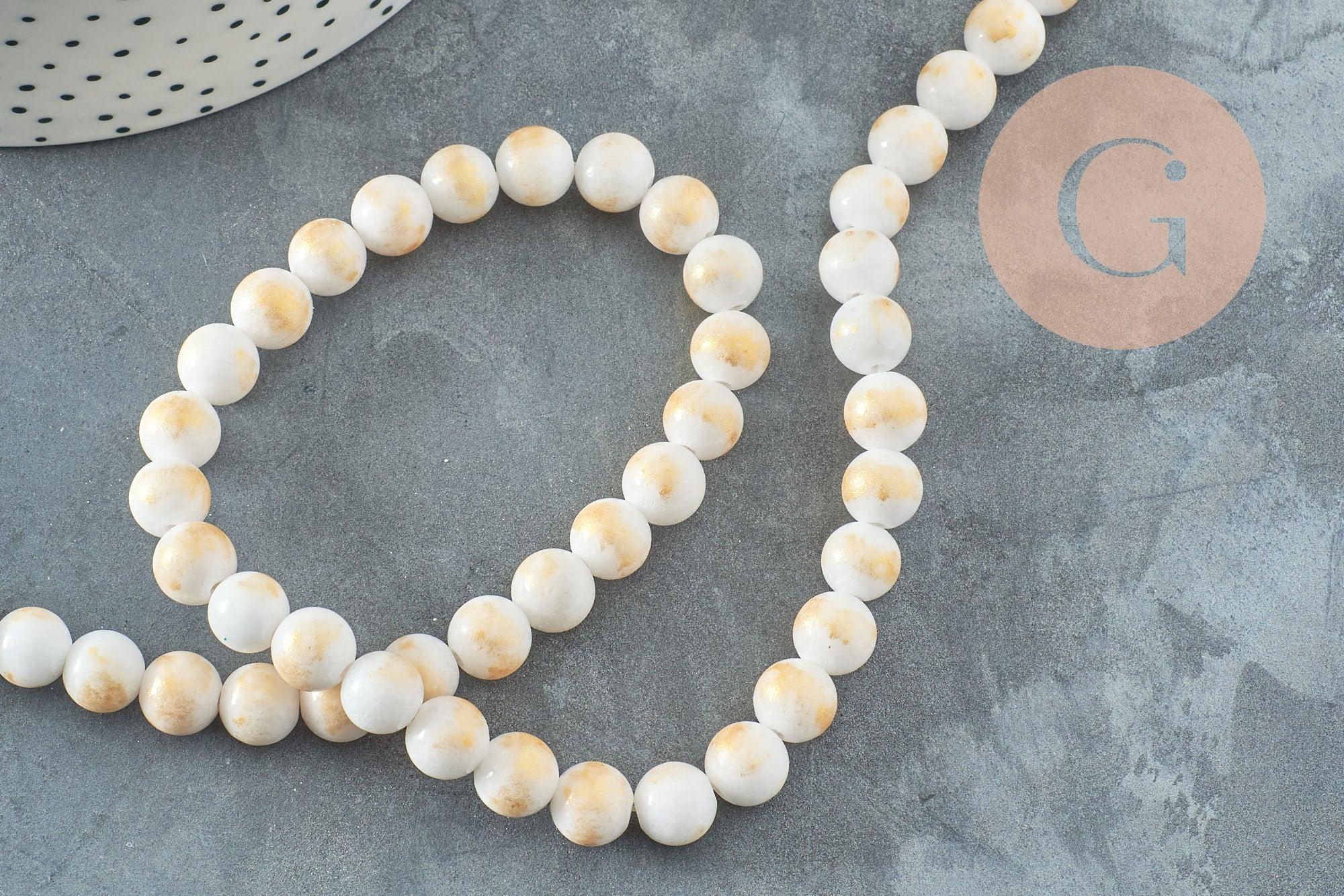 Cuentas de jade blanco y dorado, suministro creativo, cuentas redondas, jade mashan azul, piedra natural, 8 mm, alambre de 40 cm, x1 G1800