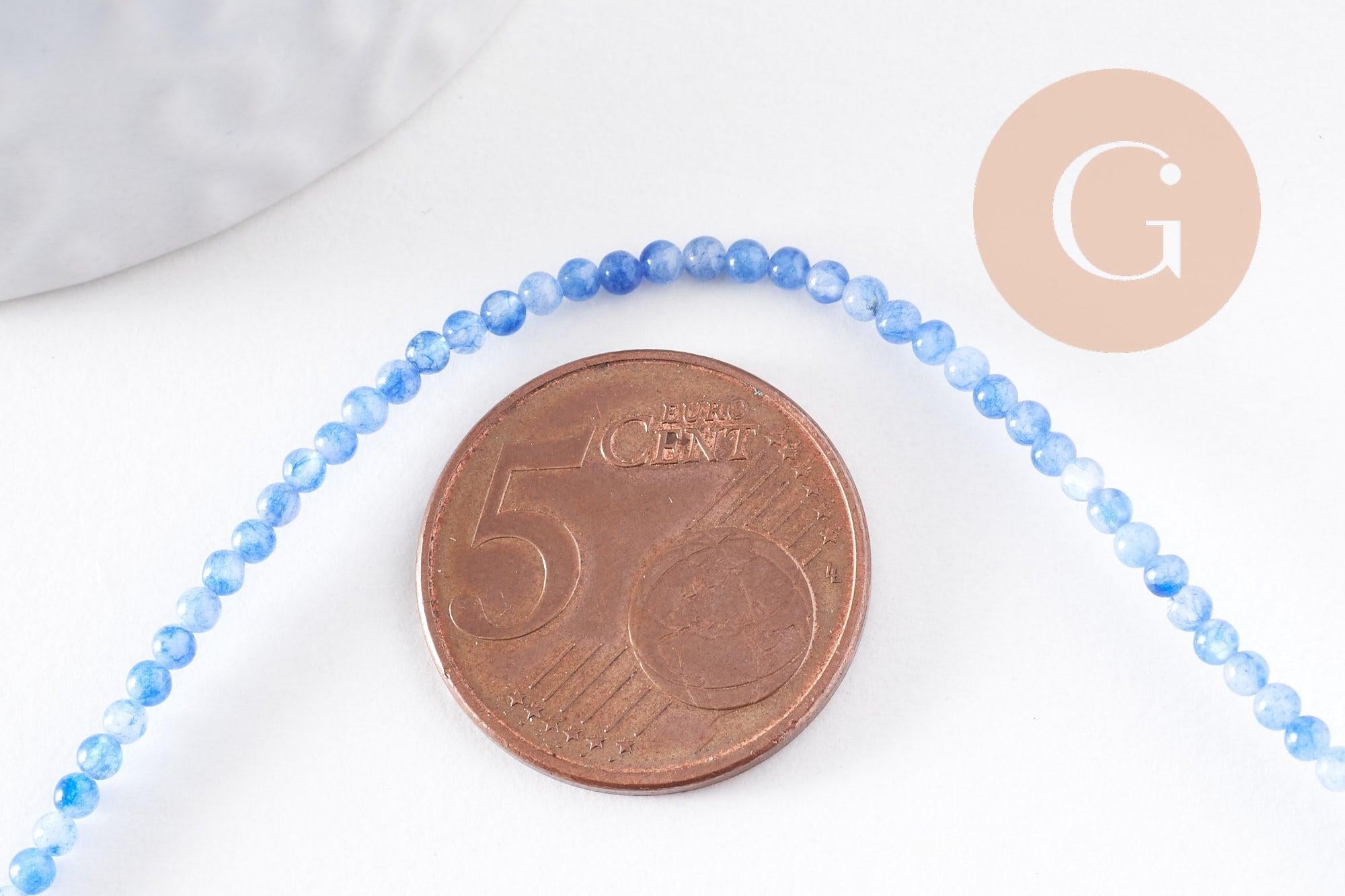 Cuentas de jade azul 2 mm, jade natural, cuentas de piedra, suministros creativos, piedras preciosas, cuentas de joyería, 2 mm, alambre de 40 cm - (G1125)