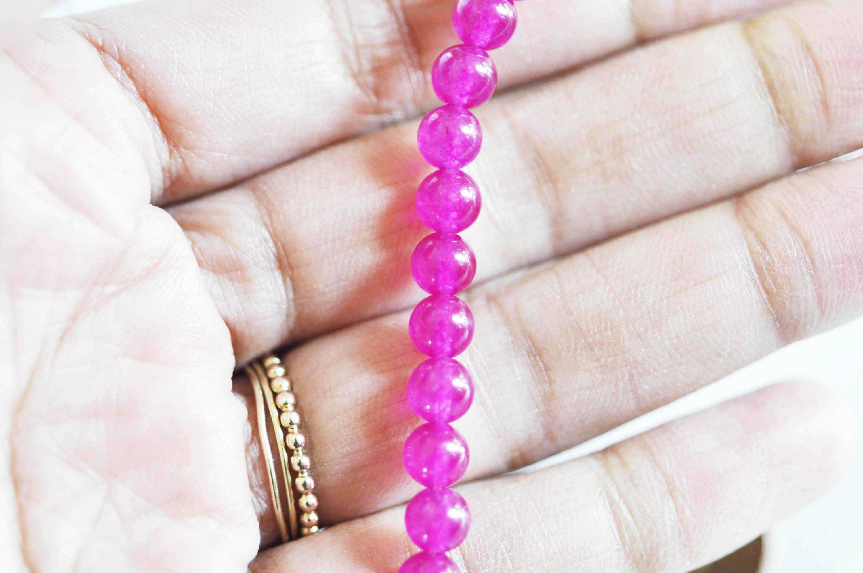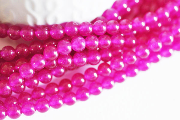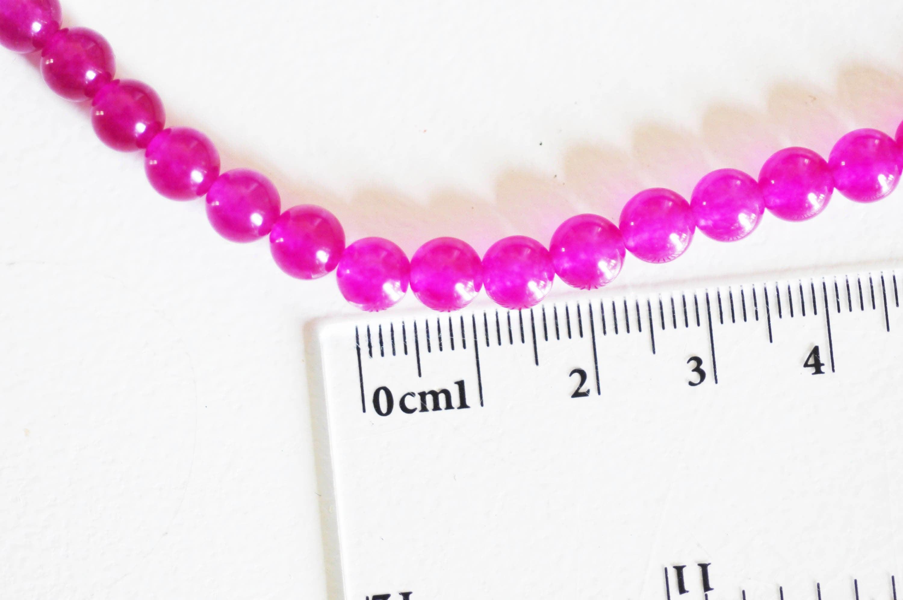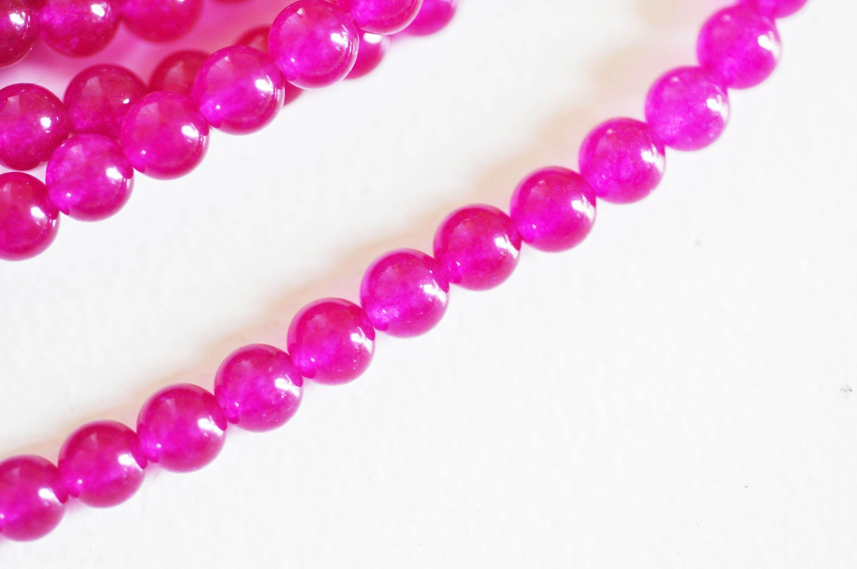 Añade un toque vibrante y audaz a tus creaciones con estas cuentas redondas de jade natural teñidas de rosa fucsia .