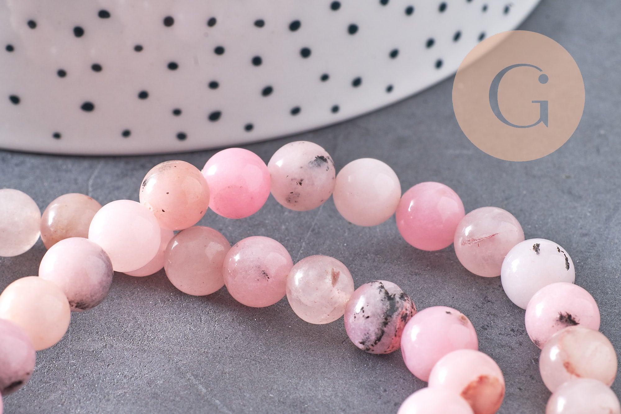 Añade un toque de dulzura y poesía a tus creaciones con estas cuentas de jaspe rosa natural con motivos de flor de cerezo . Sus delicados tonos rosa empolvado, beige y blanco jaspeado evocan la belleza efímera de las flores de sakura, perfectas para joyería romántica y refinada.