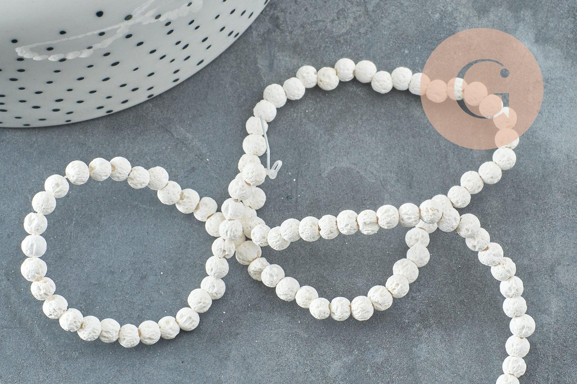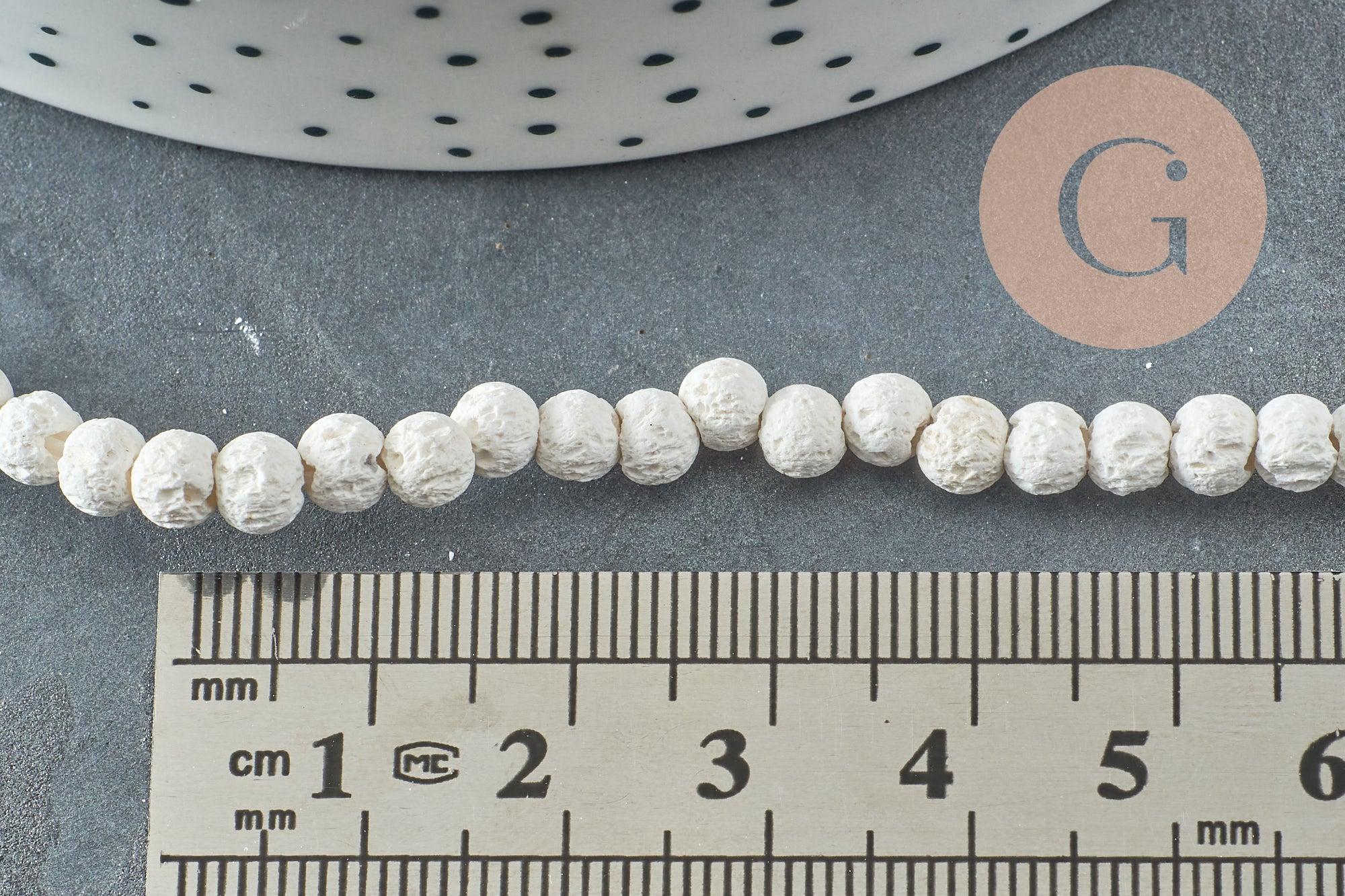 Añade un toque mineral y texturizado a tus creaciones con estas cuentas redondas de 4 mm de piedra de lava blanca natural .