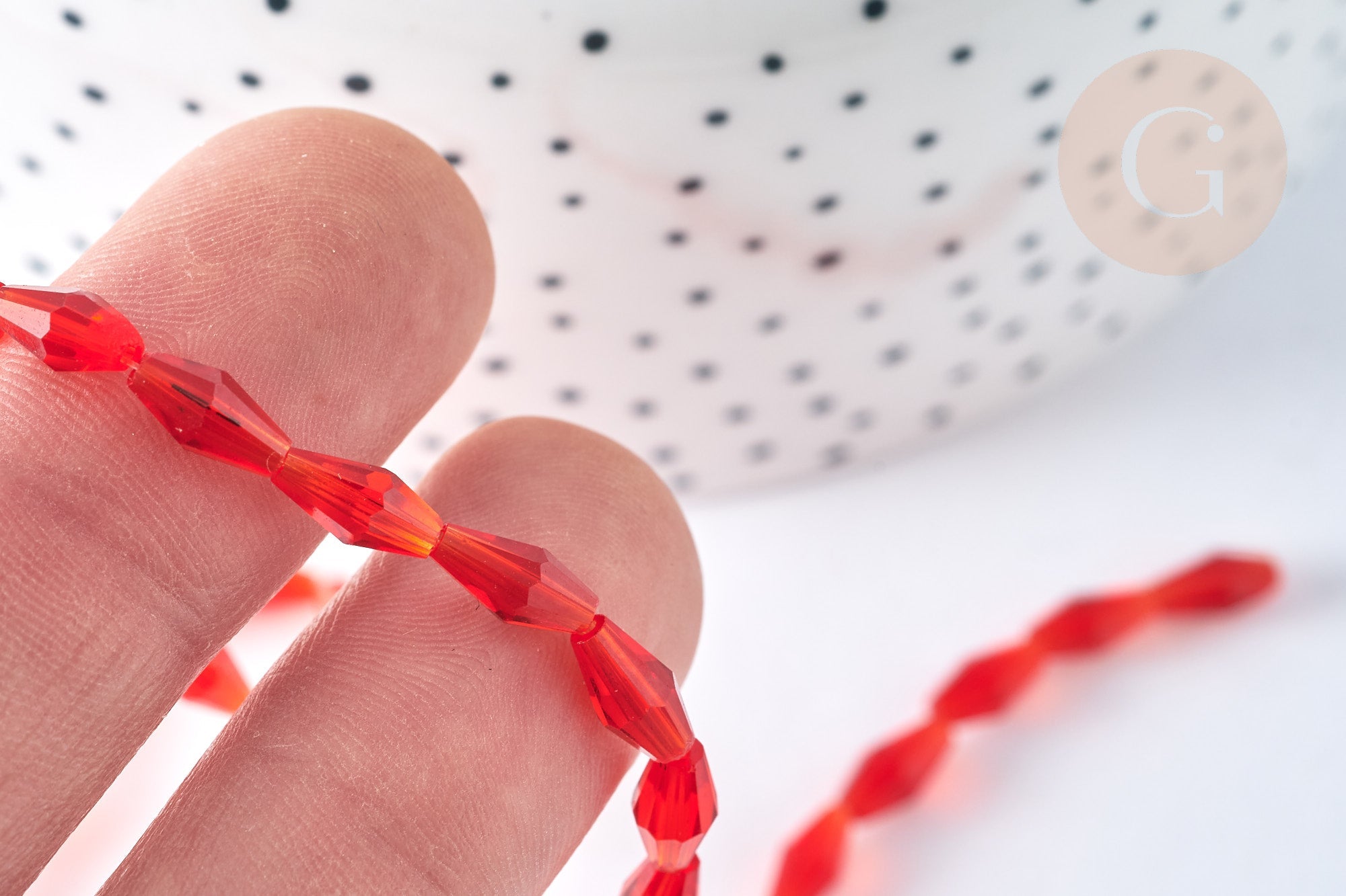 Perlas de cristal facetadas en forma de diamante transparente de color rojo de 8 x 4 mm, perlas de cristal para la creación de joyas, 1 tira de 58,4 cm (G7343)