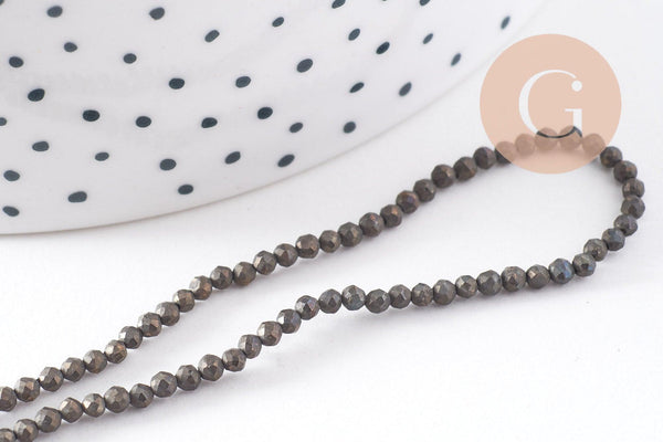 Perlas de pirita facetadas, perlas de pirita, pirita natural, pirita, 2 mm, tira de 190 perlas (G3825)