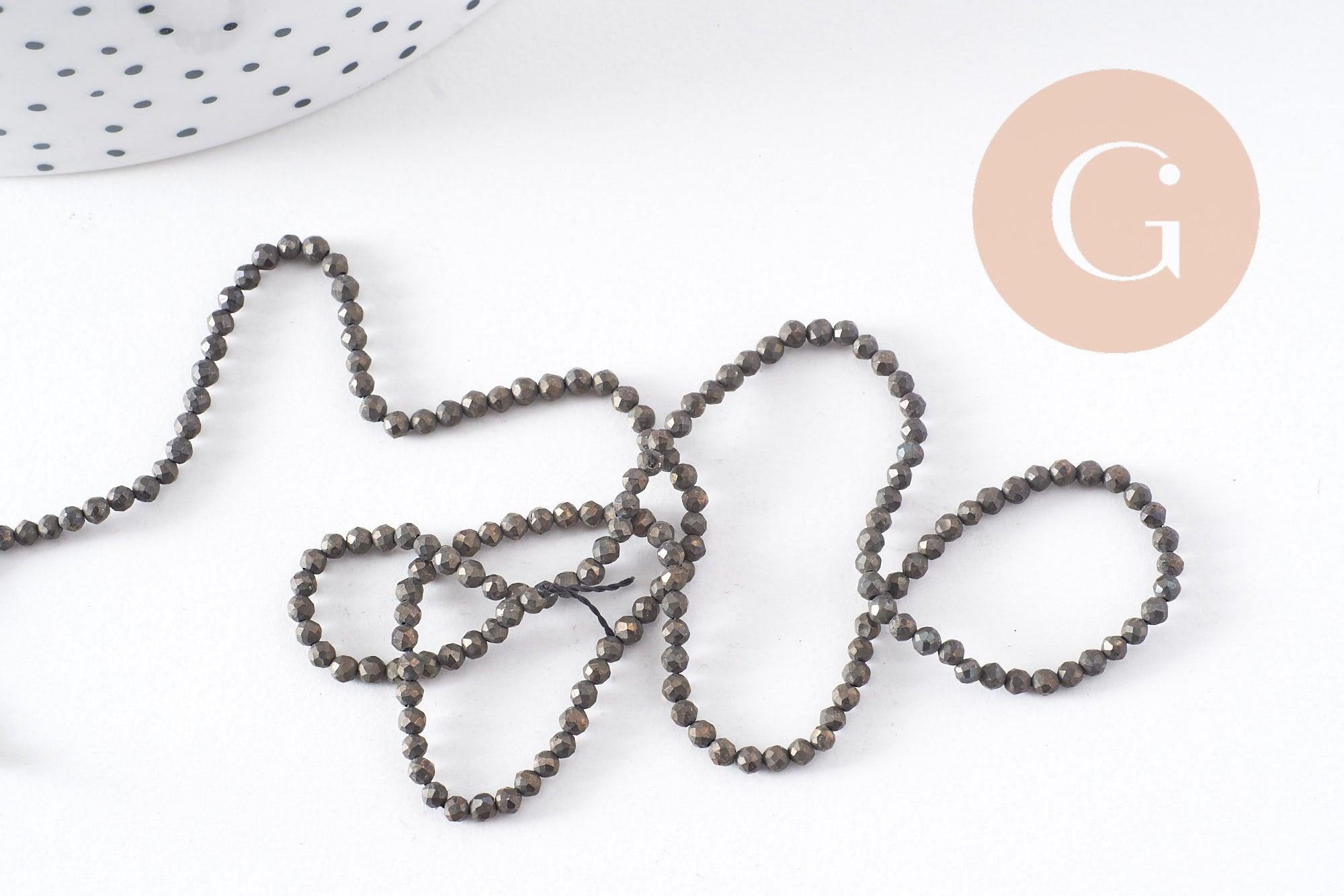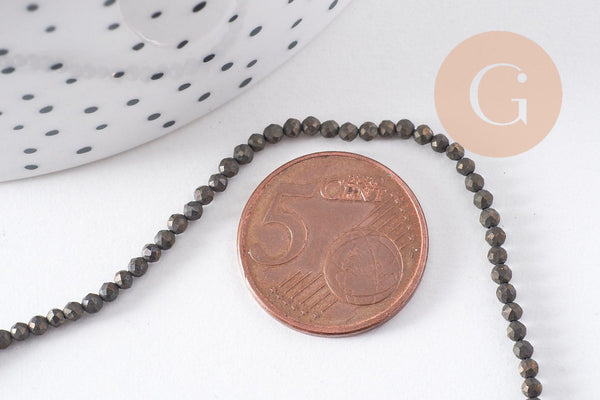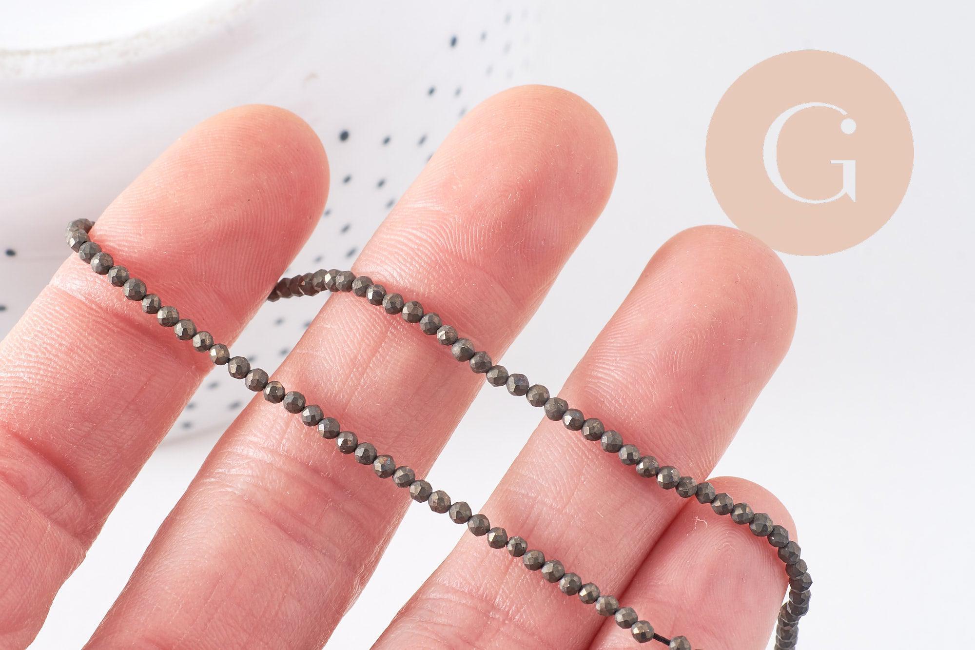 cuentas de pirita facetadas, cuentas de pirita, fabricación de joyas, pirita natural, pirita, creación de joyas, 2 mm, hilo de 190 cuentas