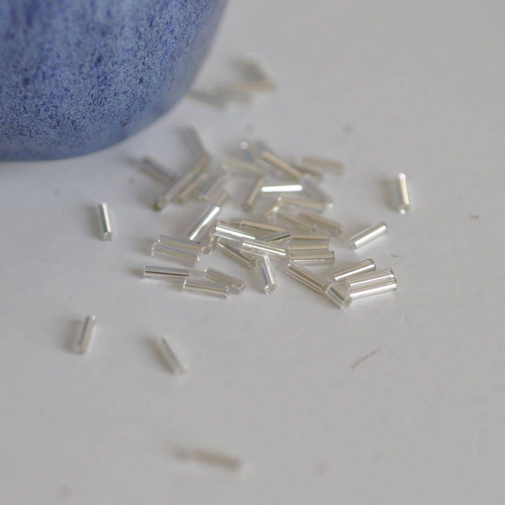 Añade un toque elegante y moderno a tus creaciones con estas cuentas de semillas de tubo plateadas . Su forma alargada permite crear patrones refinados y dinámicos, perfectos para joyería DIY con un diseño sofisticado.