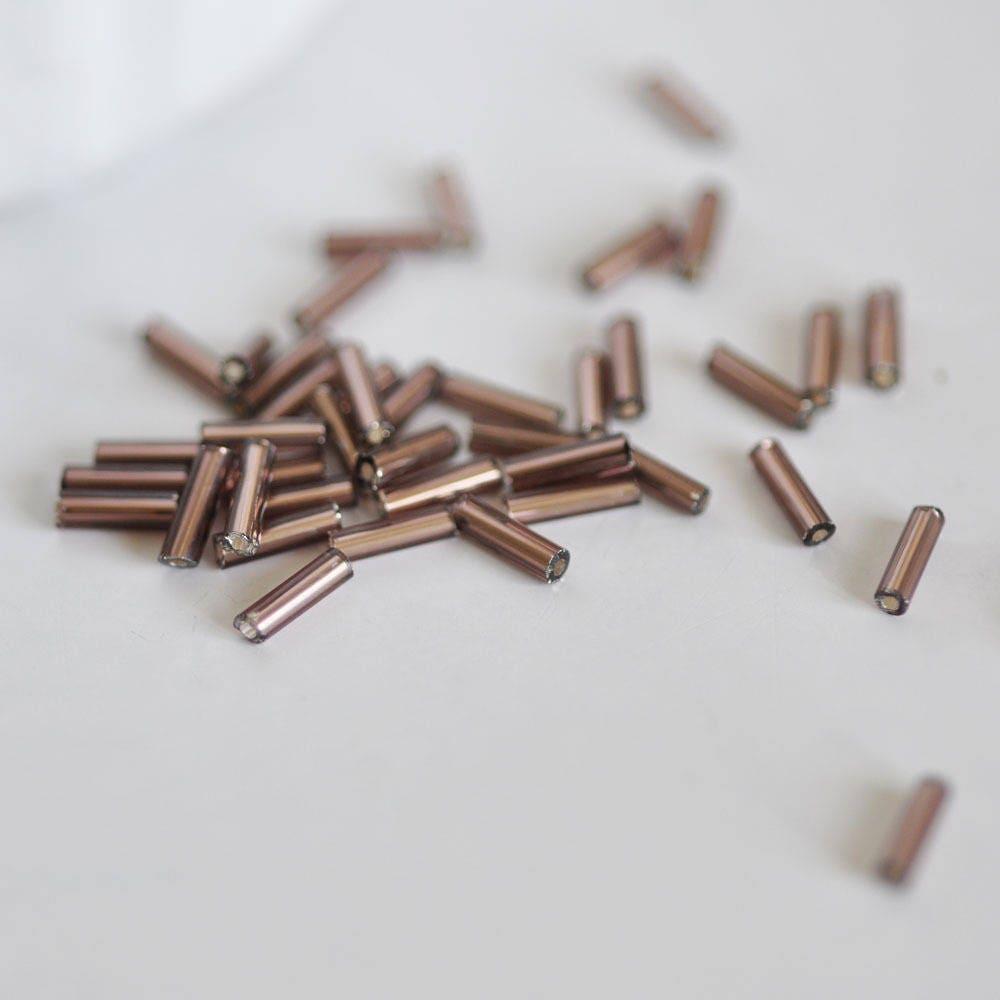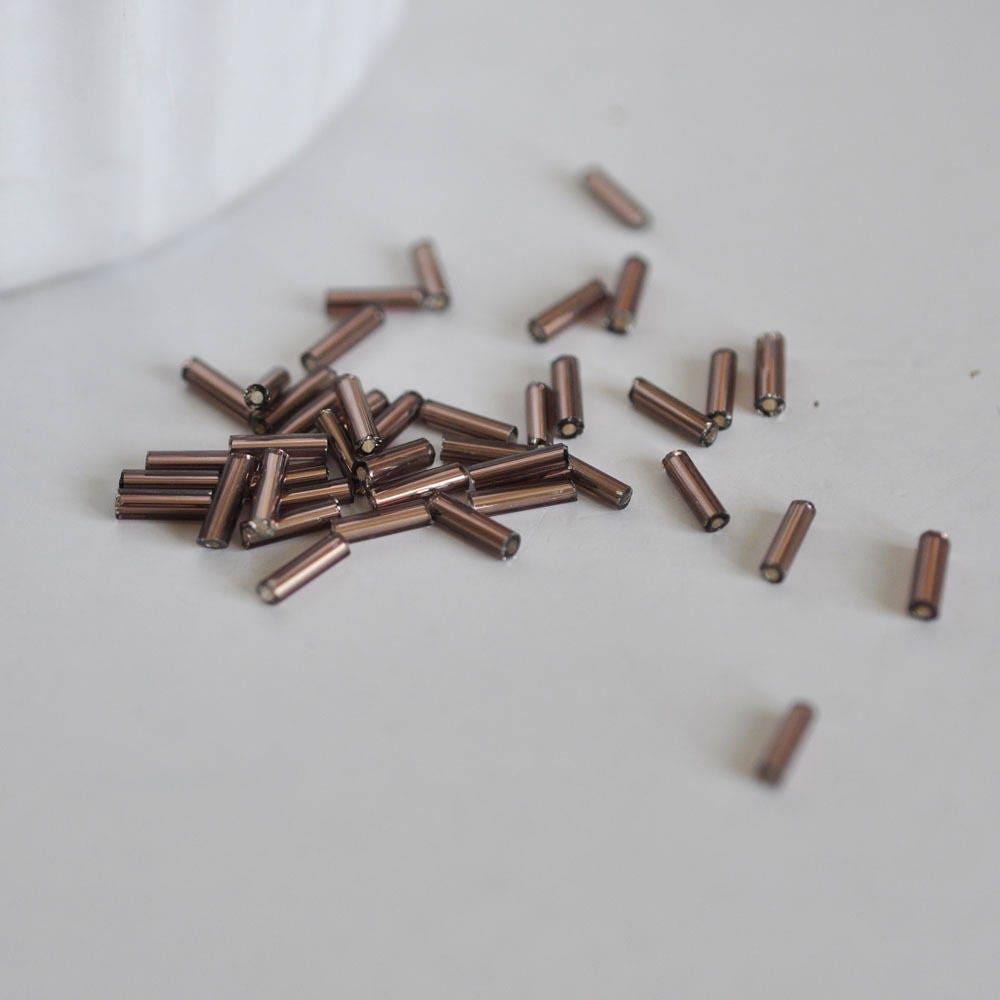 Cuentas de semillas Tubo púrpura metálico, Suministros creativos, cuentas de semillas plateadas, cuentas metálicas púrpuras, 6 mm x 2 mm, 5 gramos