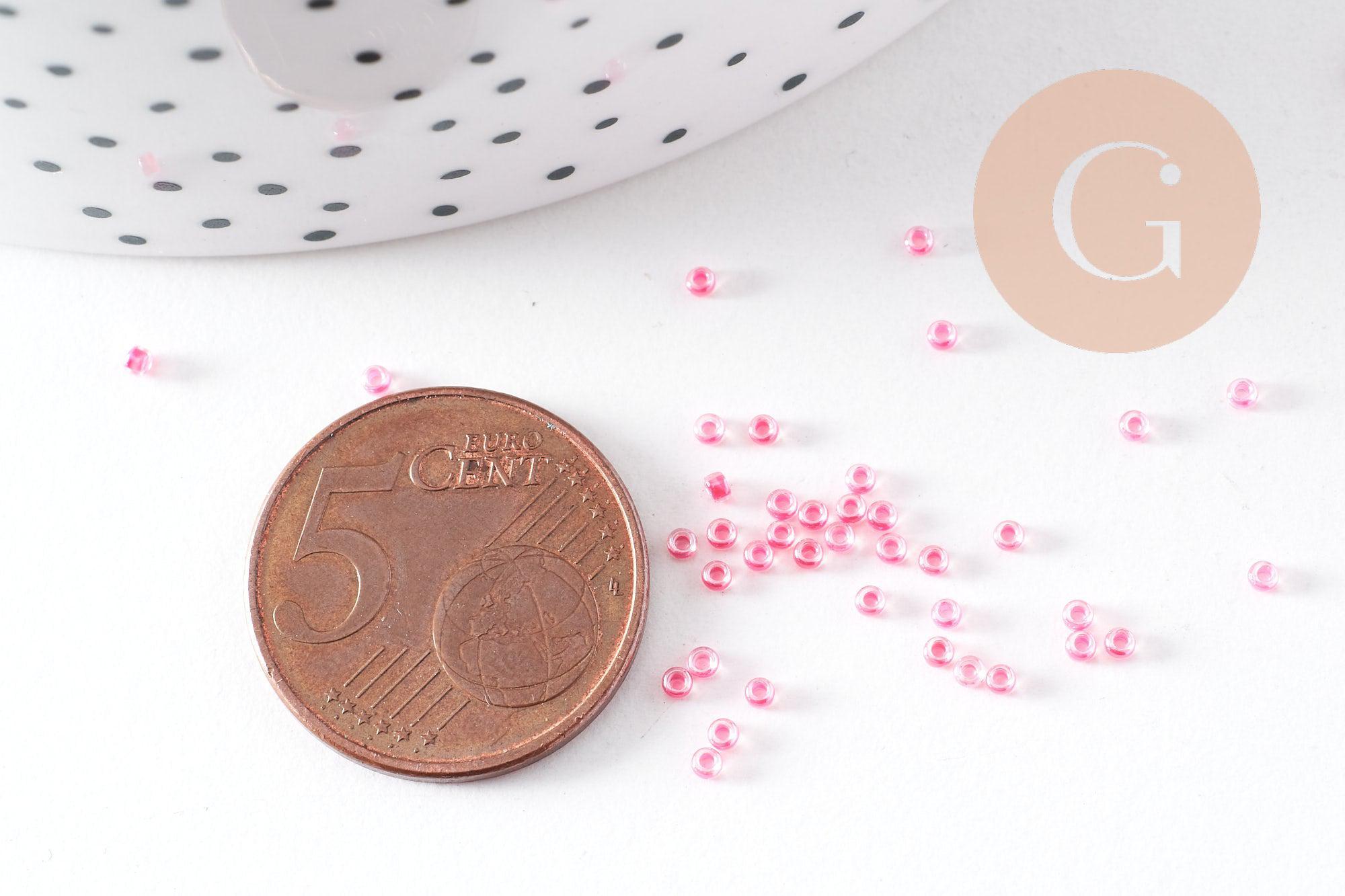 Cuentas de semillas rosas miyuki, cuentas de semillas japonesas Cristal forrado fucsia, cuentas de semillas con cuentas, 15/0, 1,5 mm, bolsa 10 g