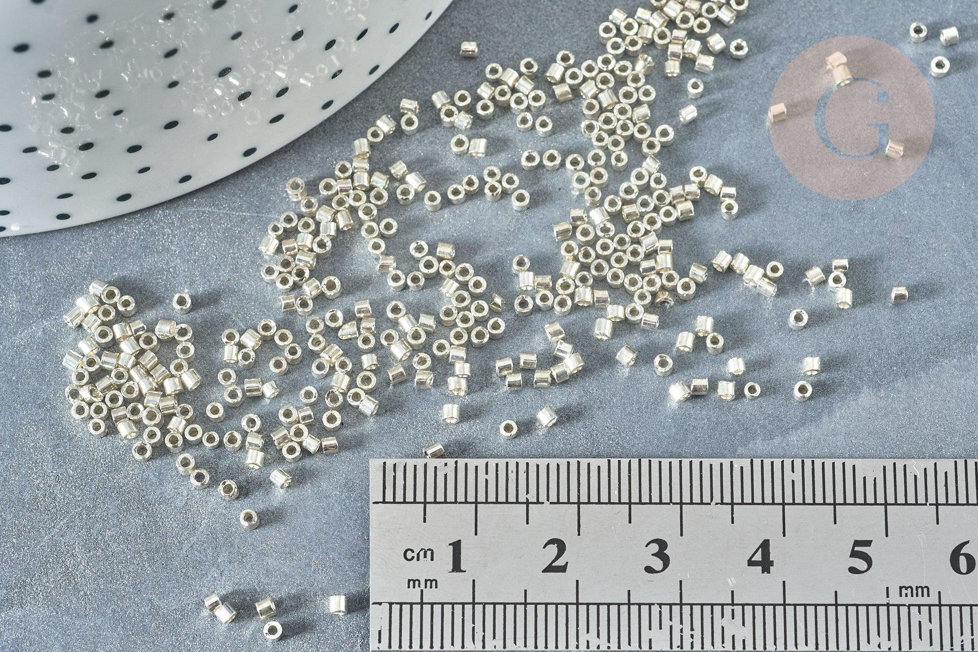 Perles rocailles verre cylindrique gris métallisé façon Delica Miyuki Lined Crystal, x1 sachet de 8g (G8168)