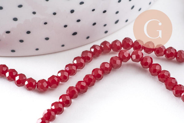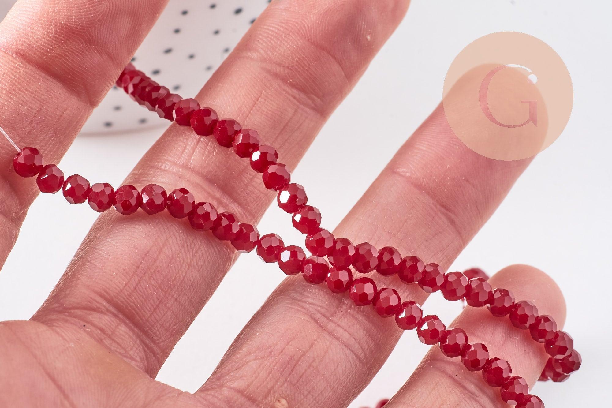 Una tira de 49 cm de cuentas biconas facetadas de cristal rojo, ideal para realizar todas tus joyas.