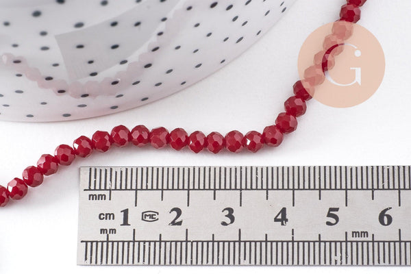Cuentas de peonza de cristal rojo burdeos de 4 x 3 mm, cuentas de vidrio facetadas, cuentas bicono, hilo de 40 cm, x1 (G2137)