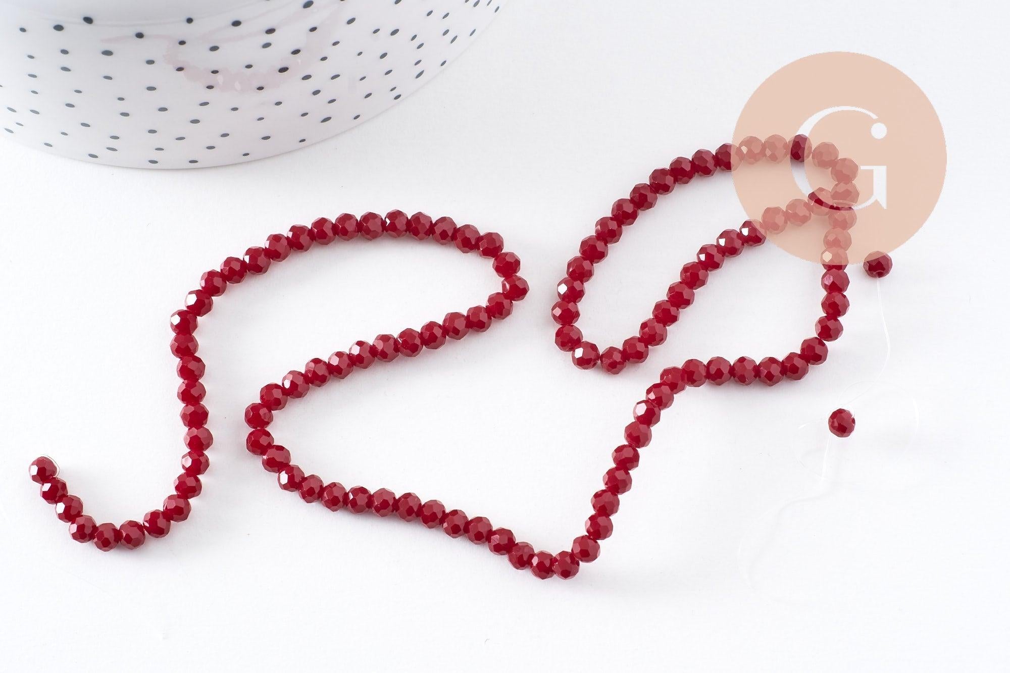 Cuentas de peonza de color burdeos, cuentas de joyería, cuentas de cristal rojo, cuentas rojas brillantes, cuentas de vidrio facetadas, cuentas biconas, 4x3 mm
