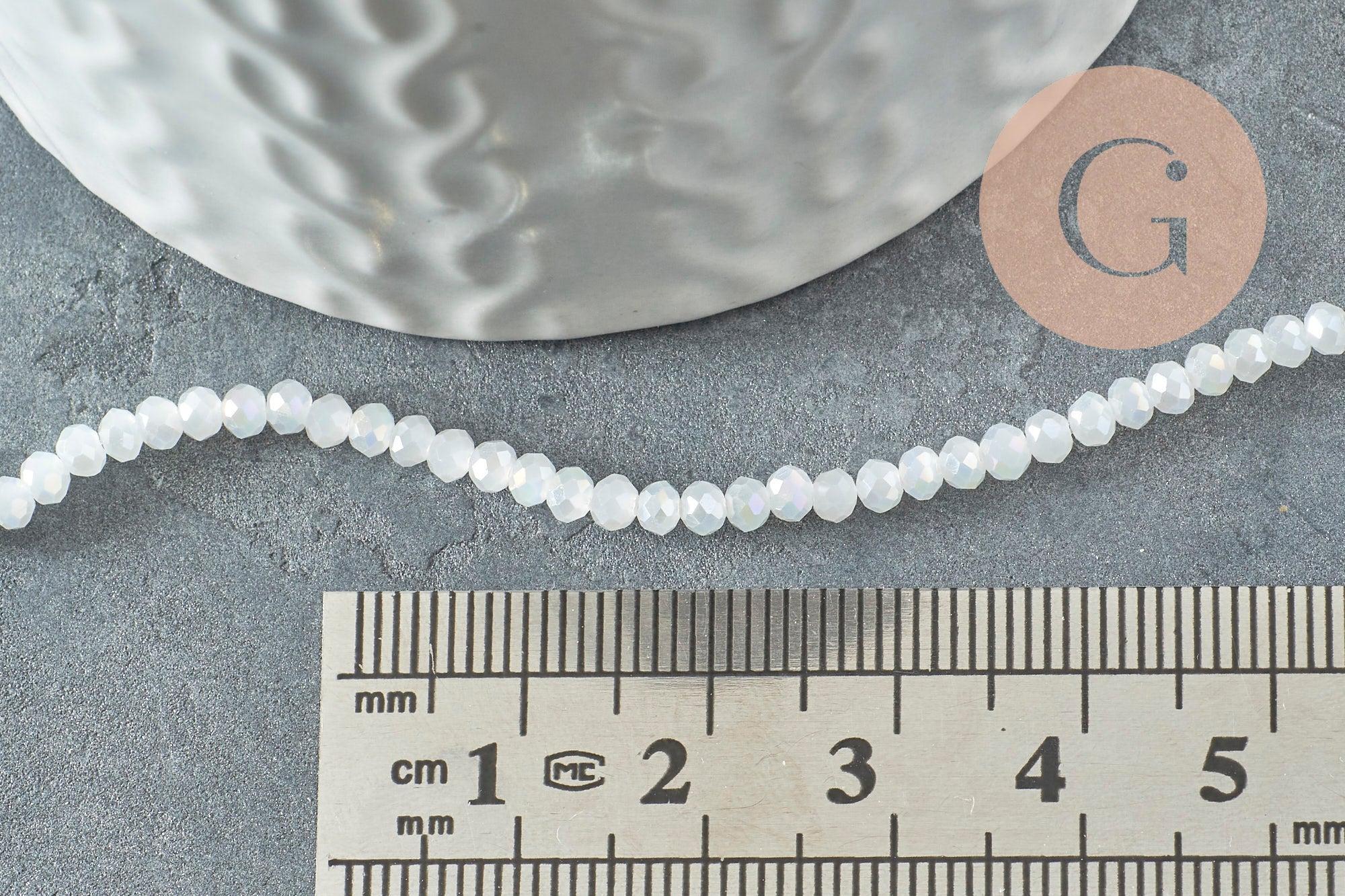 Cuentas de peonza facetadas de cristal blanco iridiscente de 2,5 mm, 1 tira de 40 cm (G2643)
