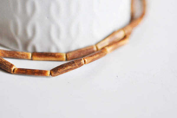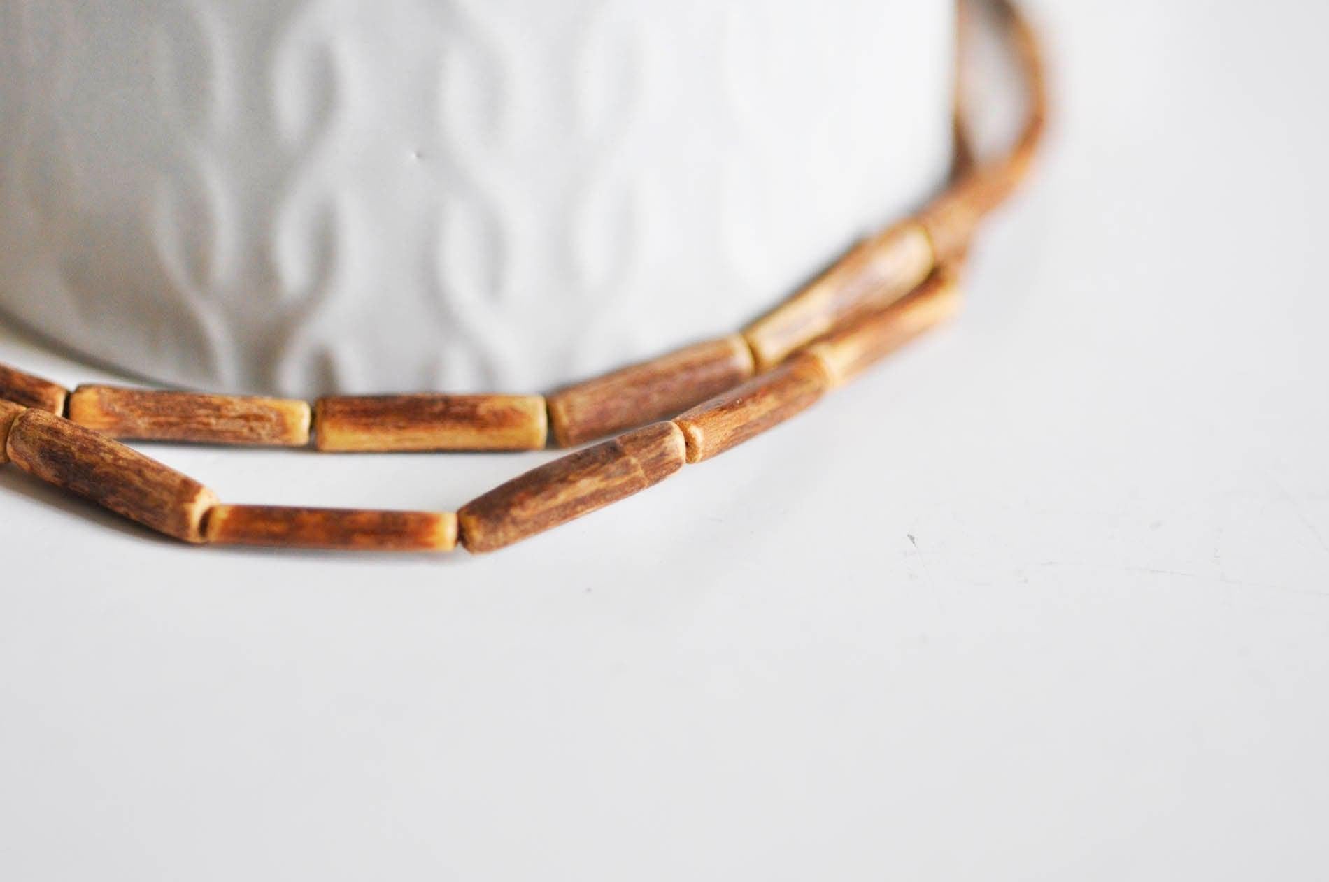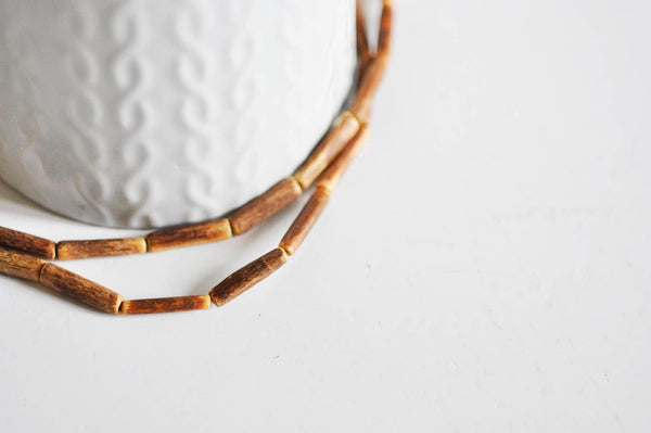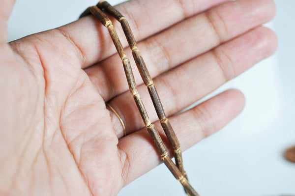 Cuentas en forma de tubo hechas de madera de coco marrón natural.