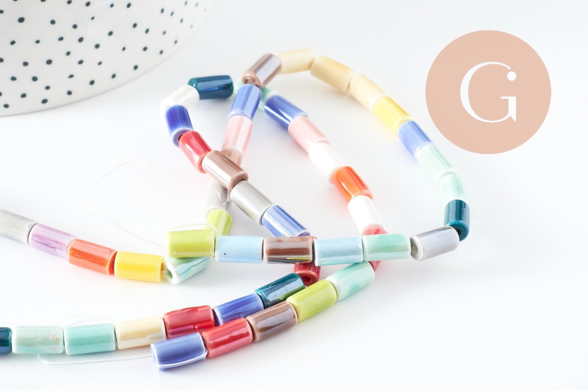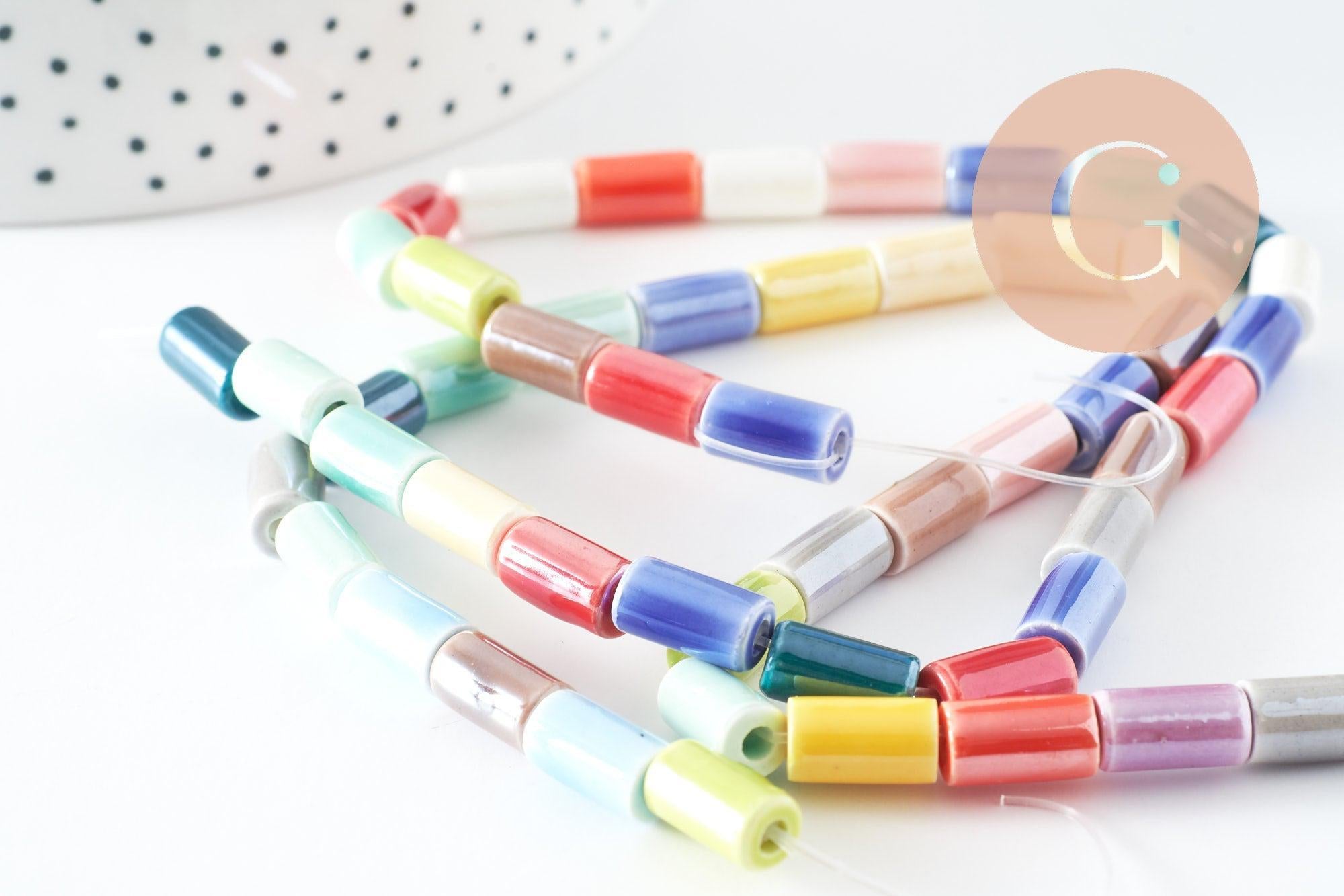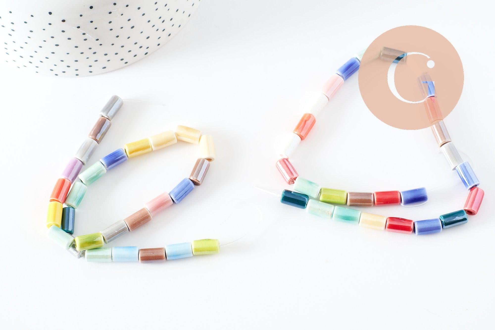 Cuentas de tubo de porcelana multicolor 11 mm, creación de bisutería DIY, alambre de 30 cm, x1 G9659
