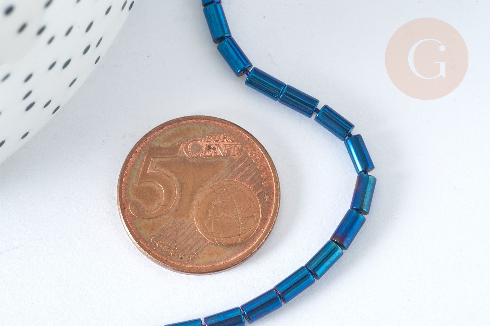 Perles Tube verre bleu irisé 4.5x2.5mm,perle tissage et fabrication bijoux,le fil de 36cm (G7337)