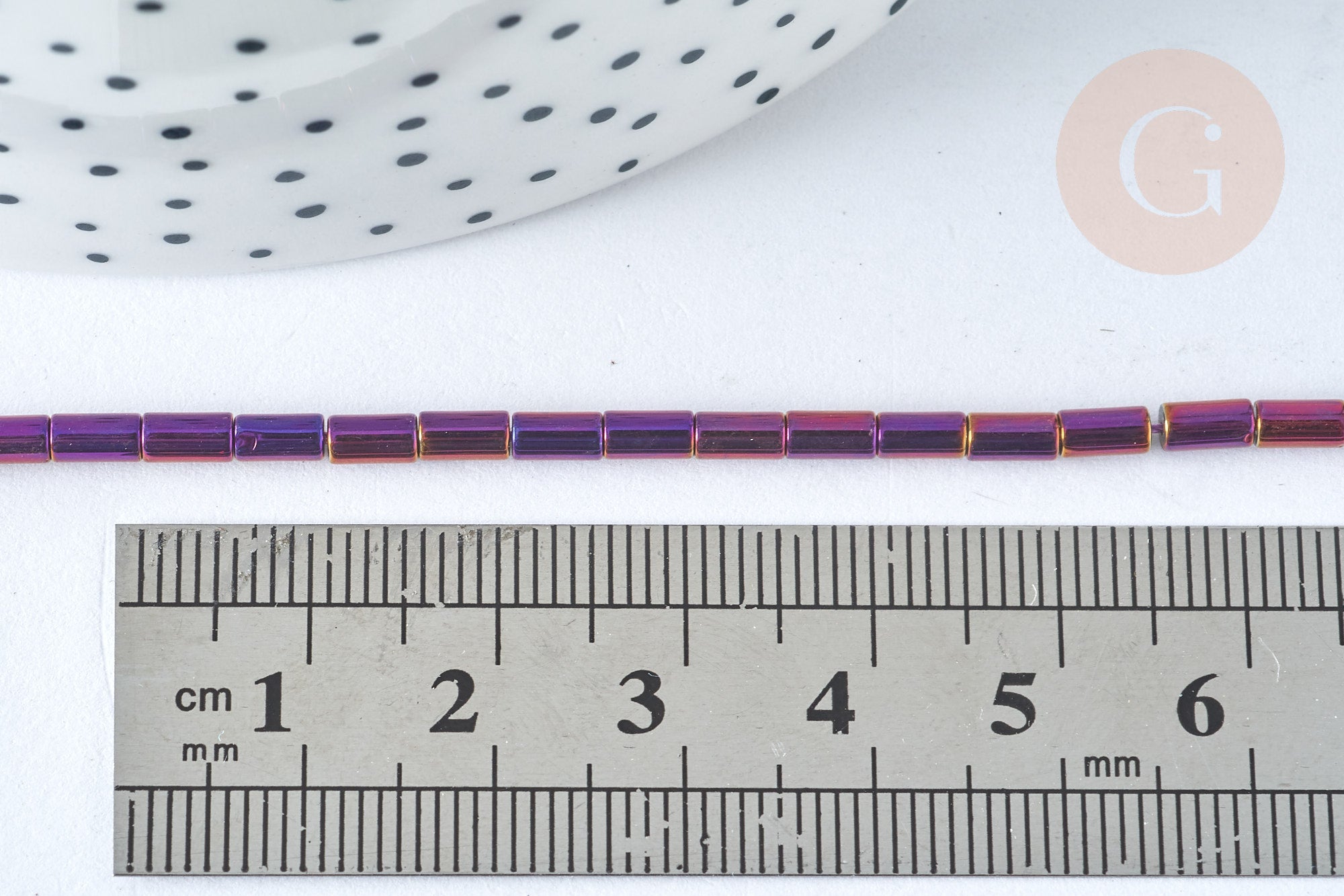 Tubos de cuentas de vidrio violeta iridiscente de 4,5 x 2,5 mm para tejer y hacer joyas, 1 tira de 36 cm (G7332)