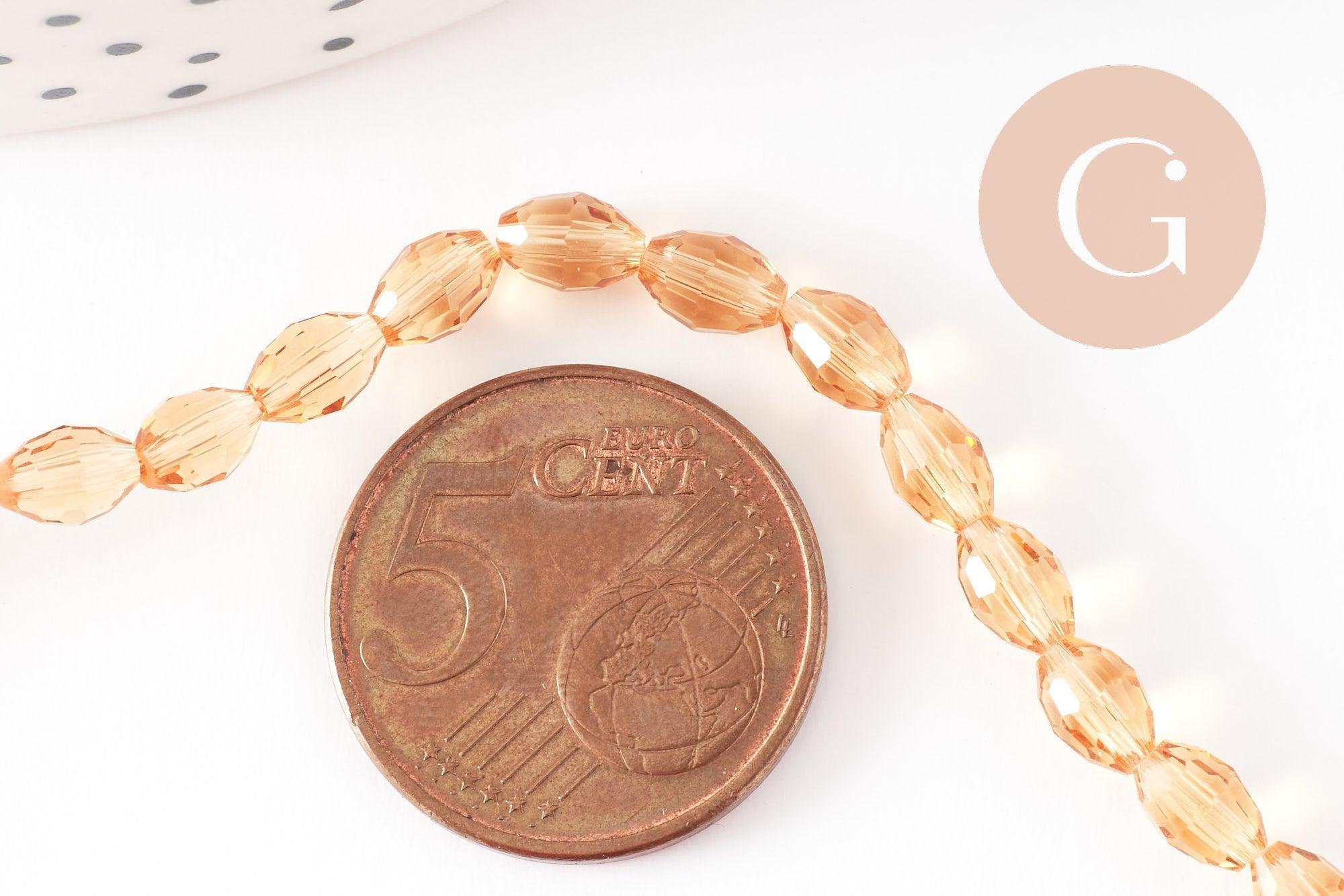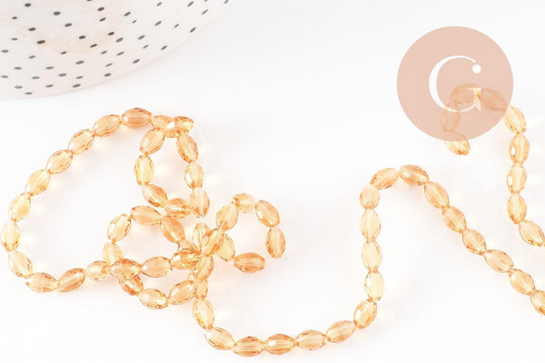 Cuentas de vidrio ovaladas facetadas de color amarillo topacio de 6 mm, x1 tira de 39 cm (G1496)