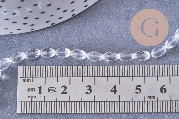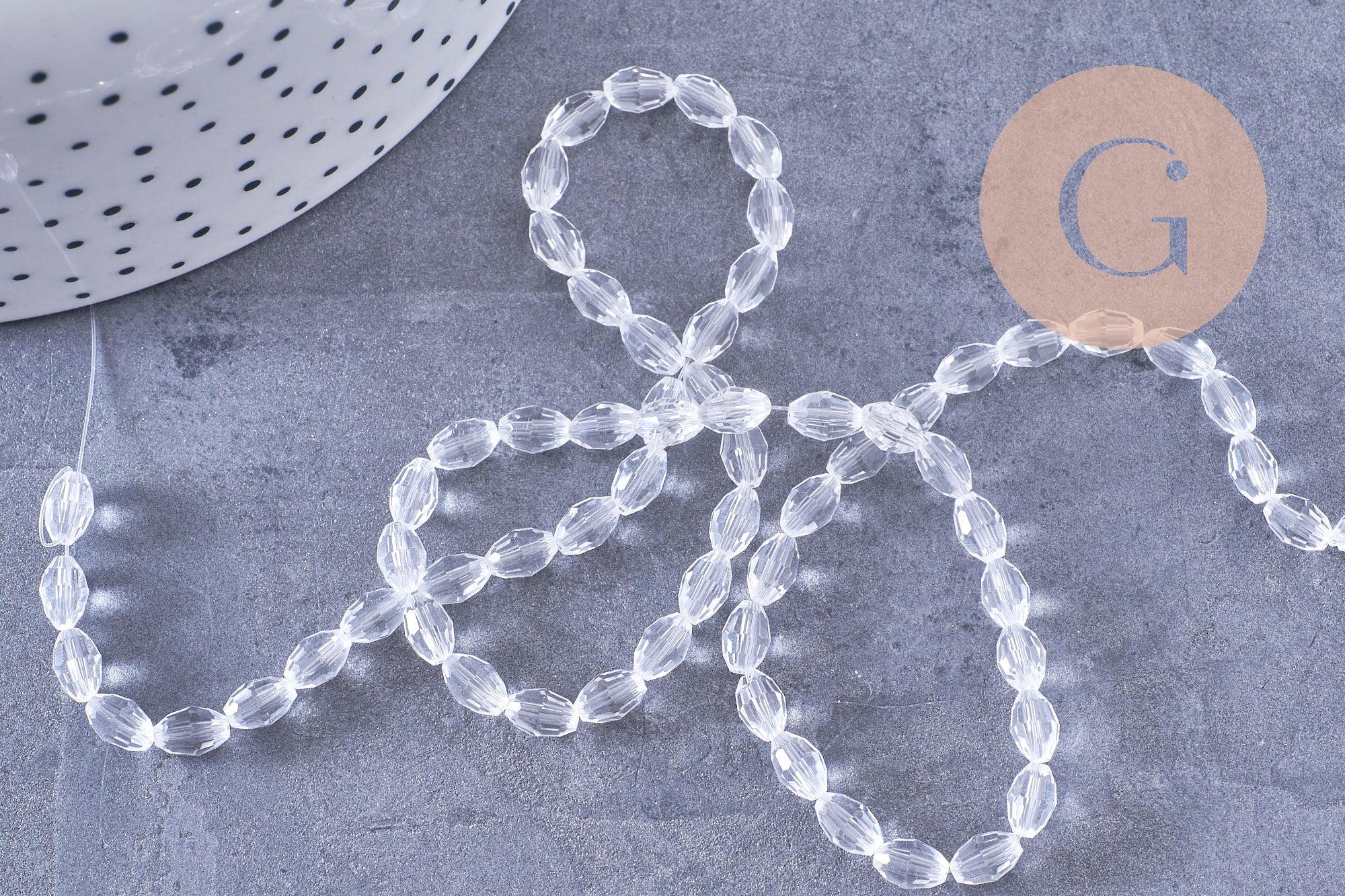 Dale brillo y ligereza a tus creaciones DIY con esta tira de cuentas ovaladas de vidrio facetado transparente . Su forma ovalada y su sutil brillo las hacen perfectas para realzar tus joyas, con un toque discreto y refinado.