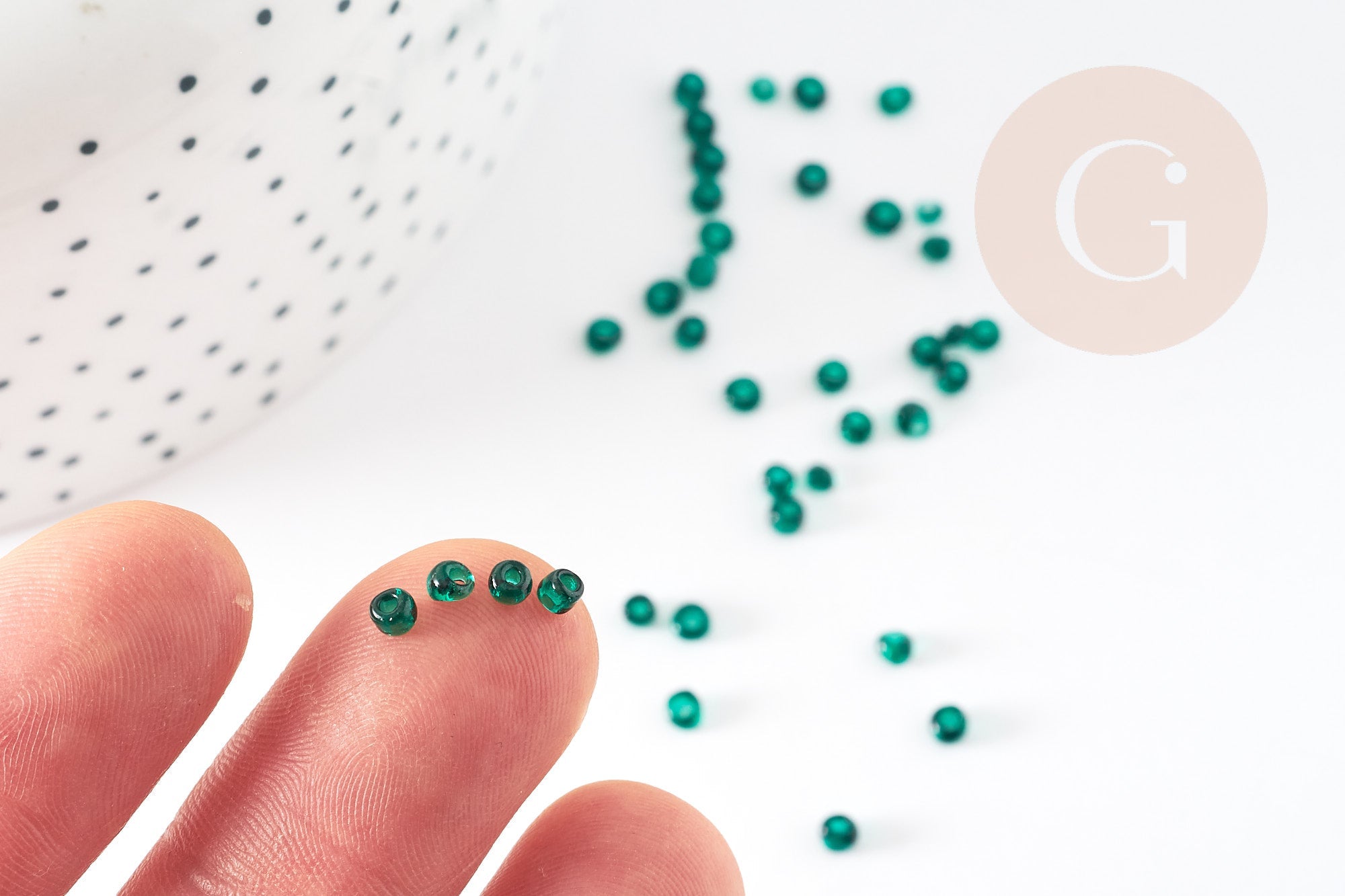 Añade un toque de profundidad y frescura a tus creaciones con estas cuentas de vidrio transparente verde oscuro . Son ideales para abalorios finos y delicadas creaciones de joyería.