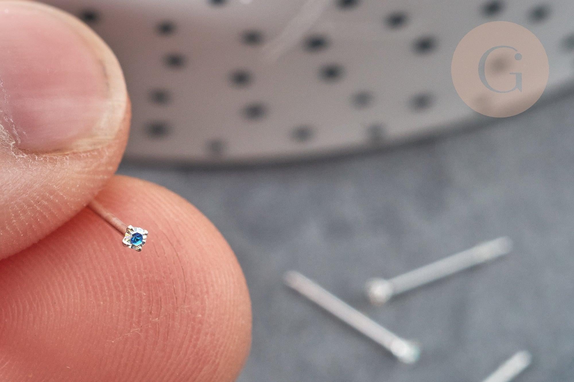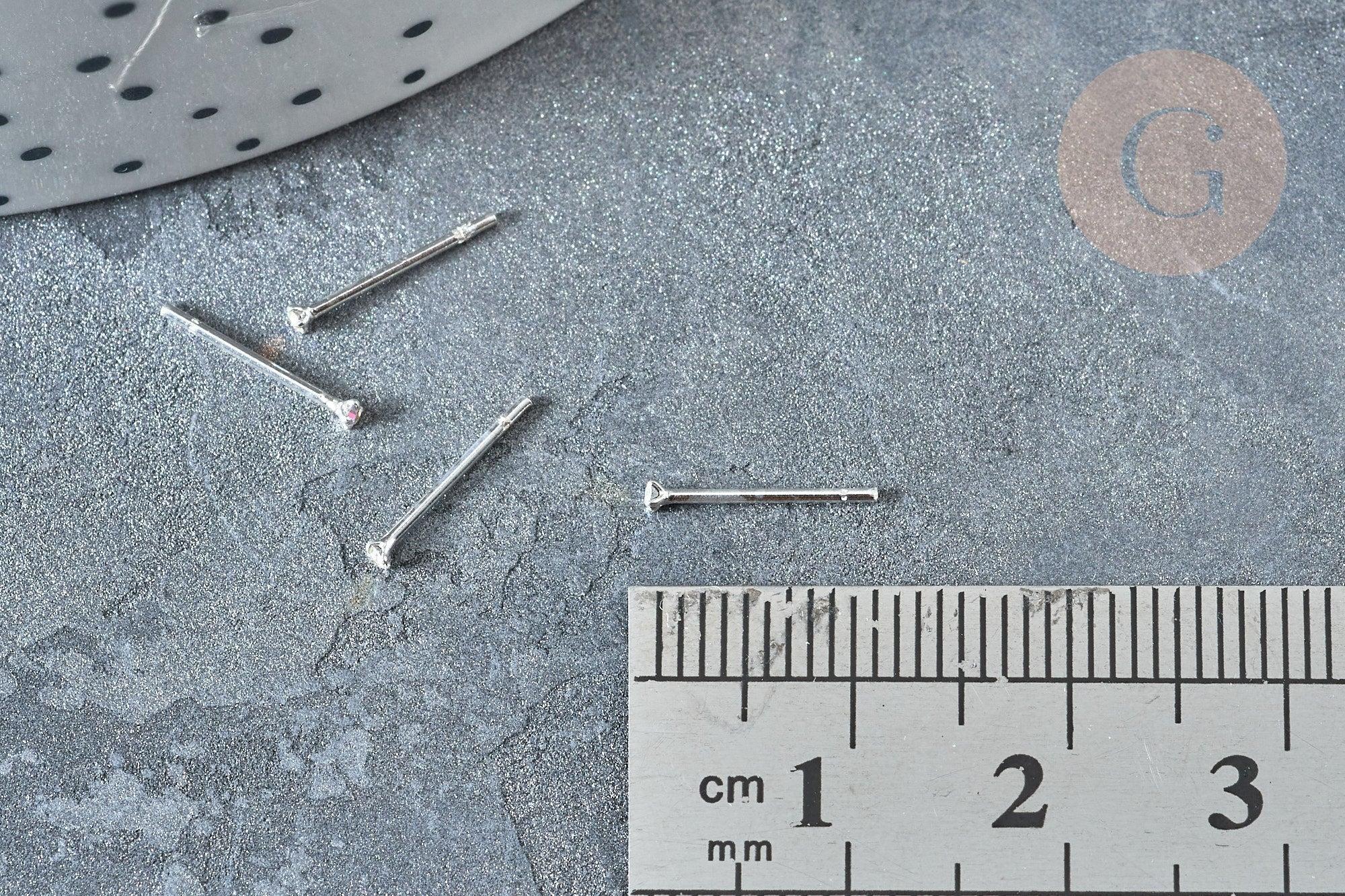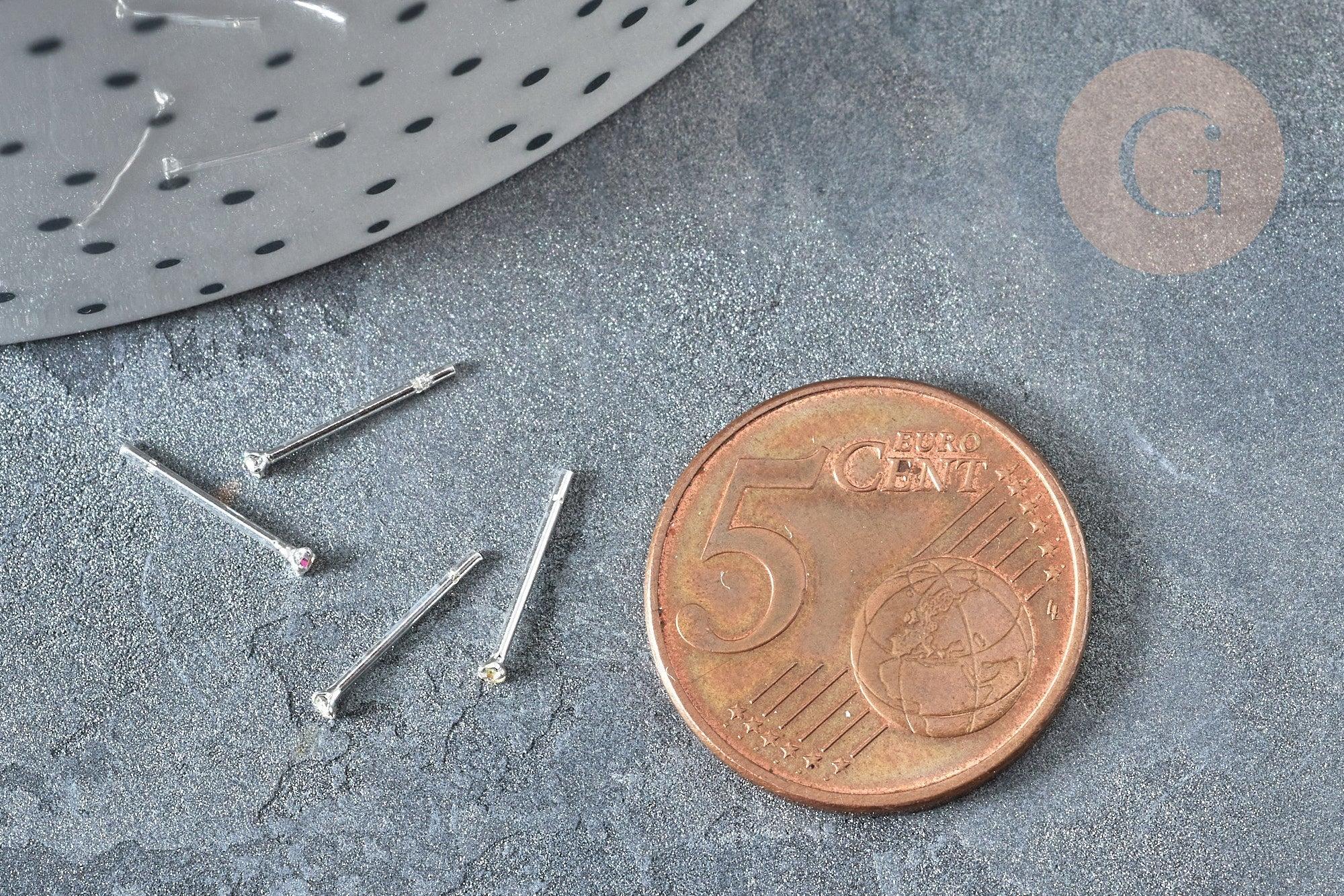 Un discreto piercing para la nariz, en plata maciza 925, con un pequeño brillo de circonita multicolor AB iridiscente, de 1,5 mm.
