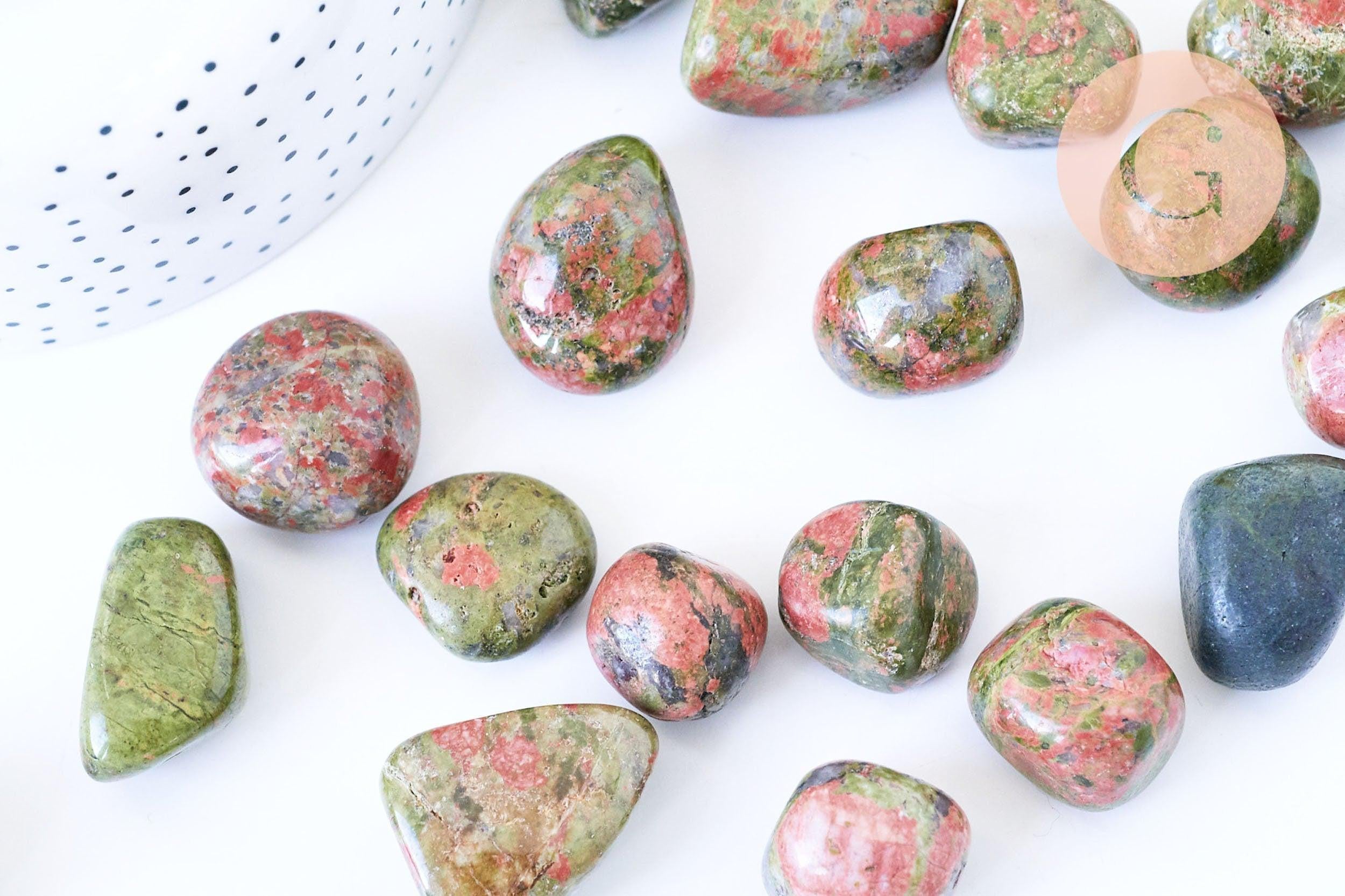 Pierre unakite naturelle brut roulé 22-30mm, pierre naturelle, litotherapie, unakite naturelle, x20gr (G5777)