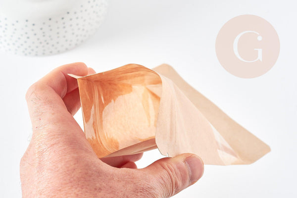 Materiales: Kraft50g/m2 con film plástico AL7 y CPP60 (propileno sin estirar)