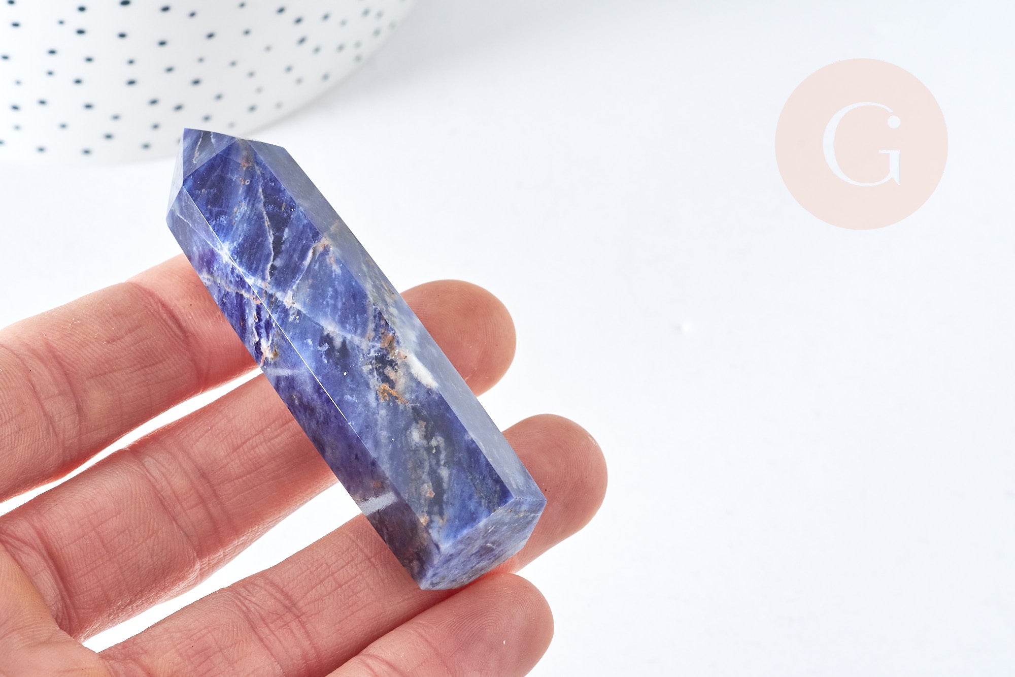 Nuestra tienda Gingerlily se enorgullece de presentar una selección de mini puntas de sodalita natural.