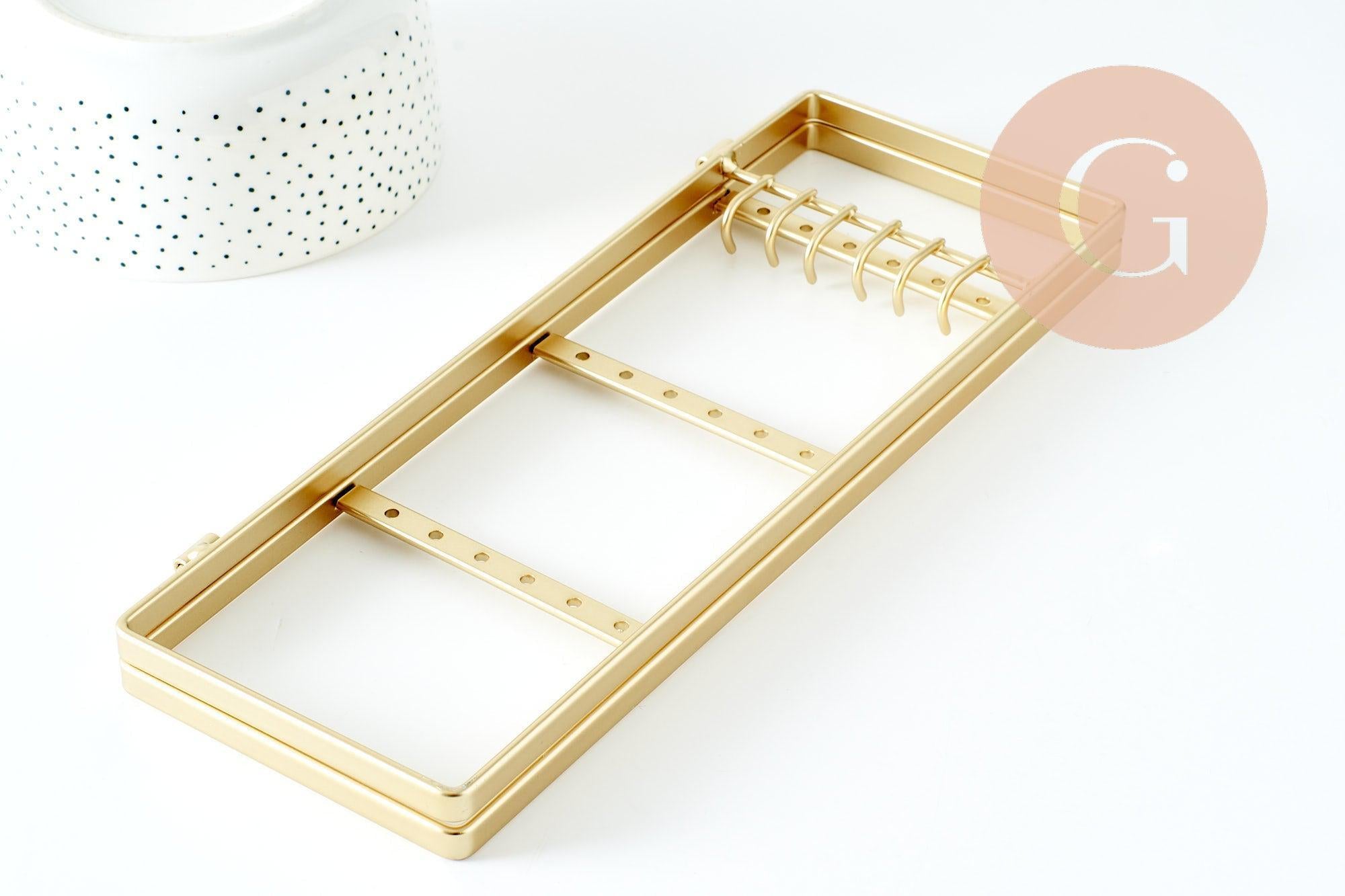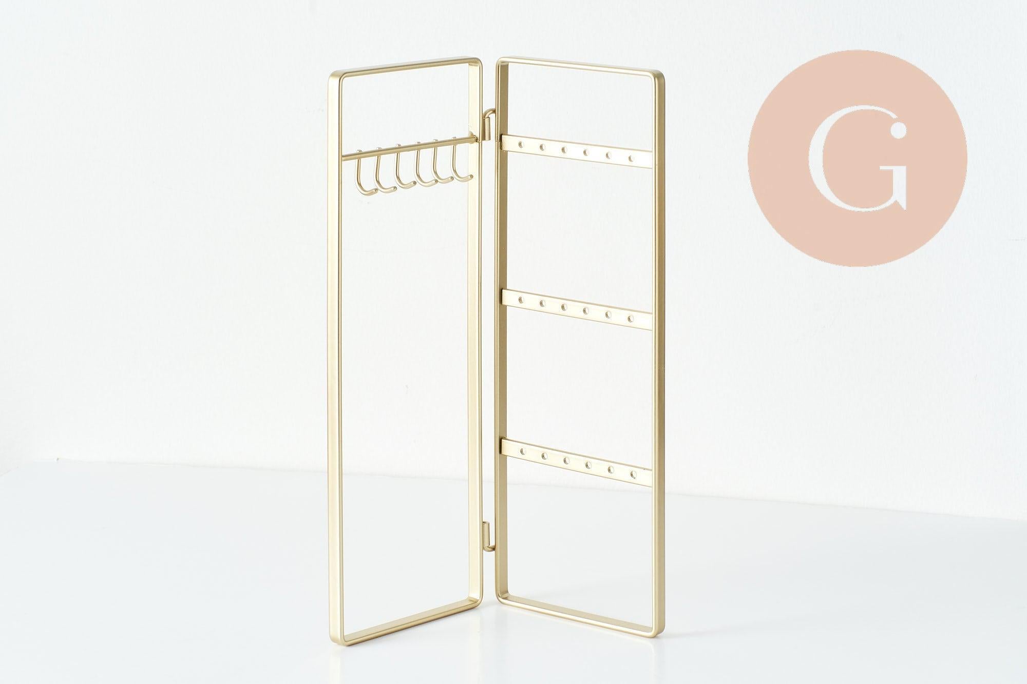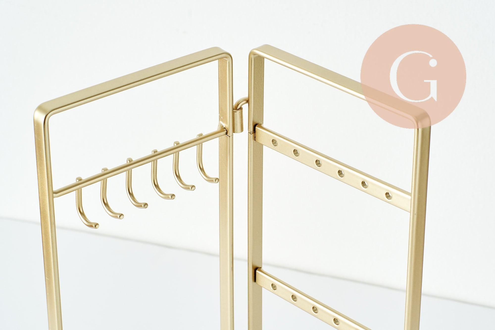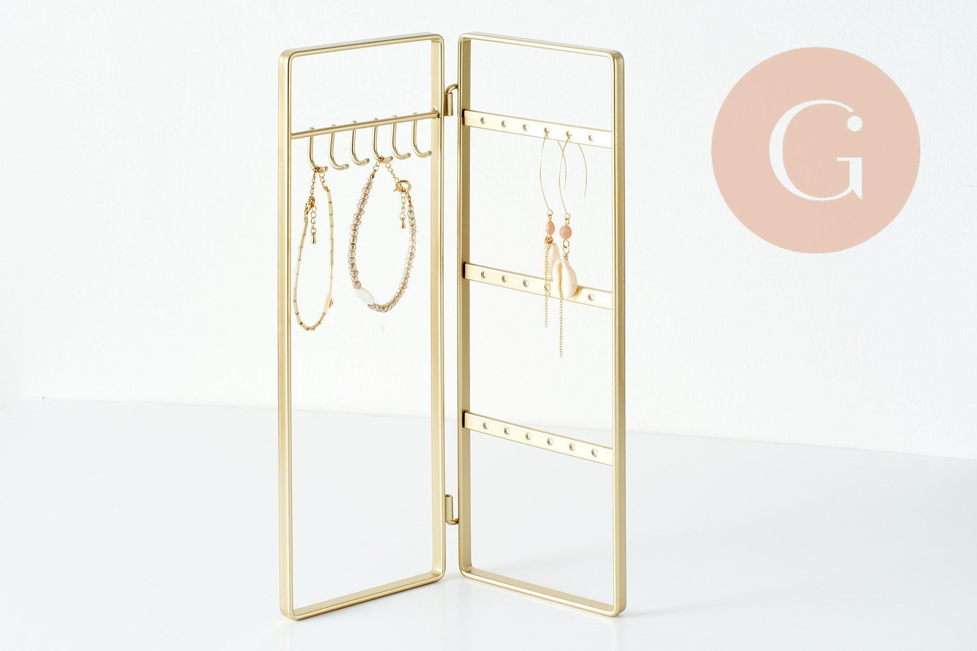 Présentoir à bijoux collier boucles d'oreilles pliable laiton doré 28cm, x1 (G9477)