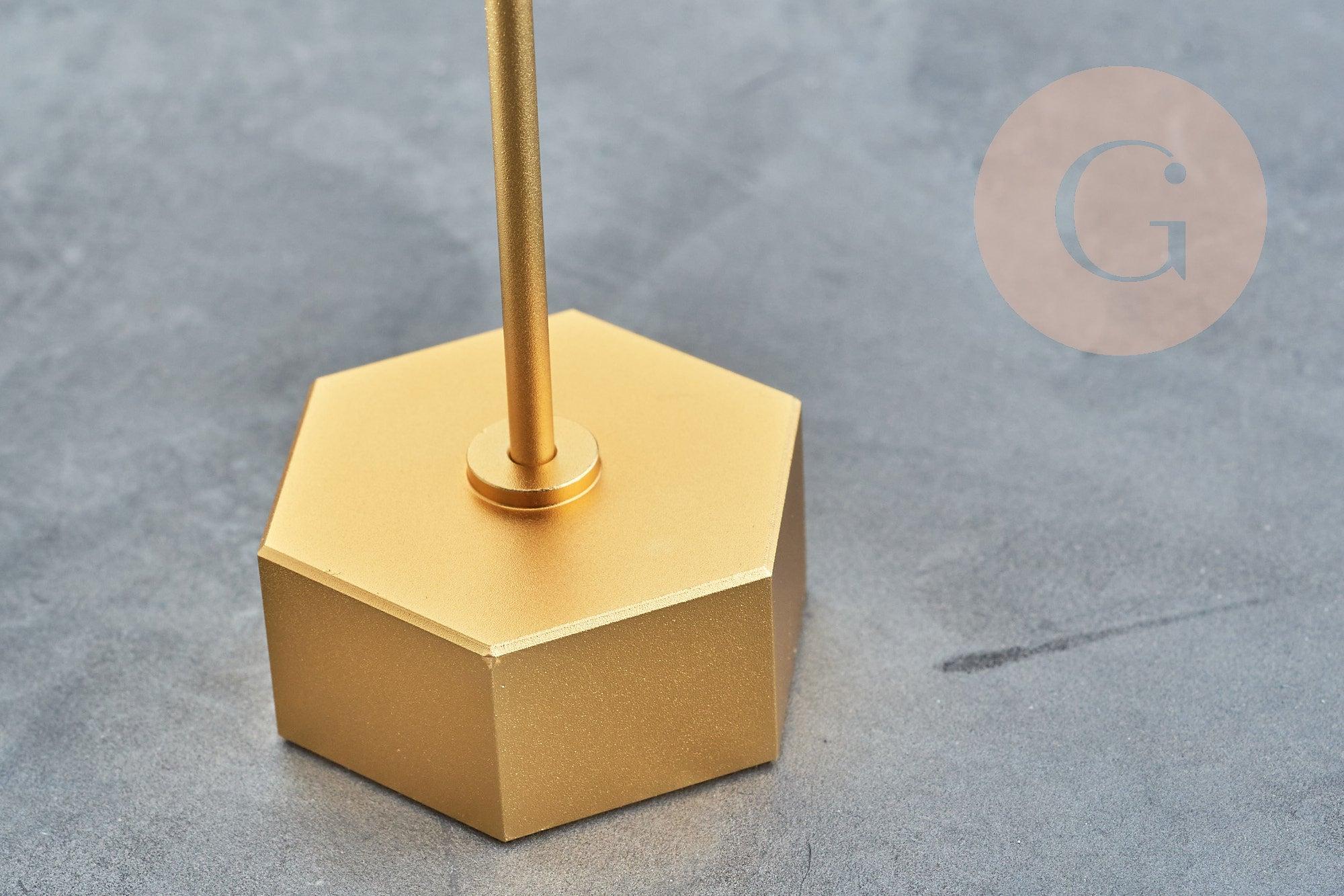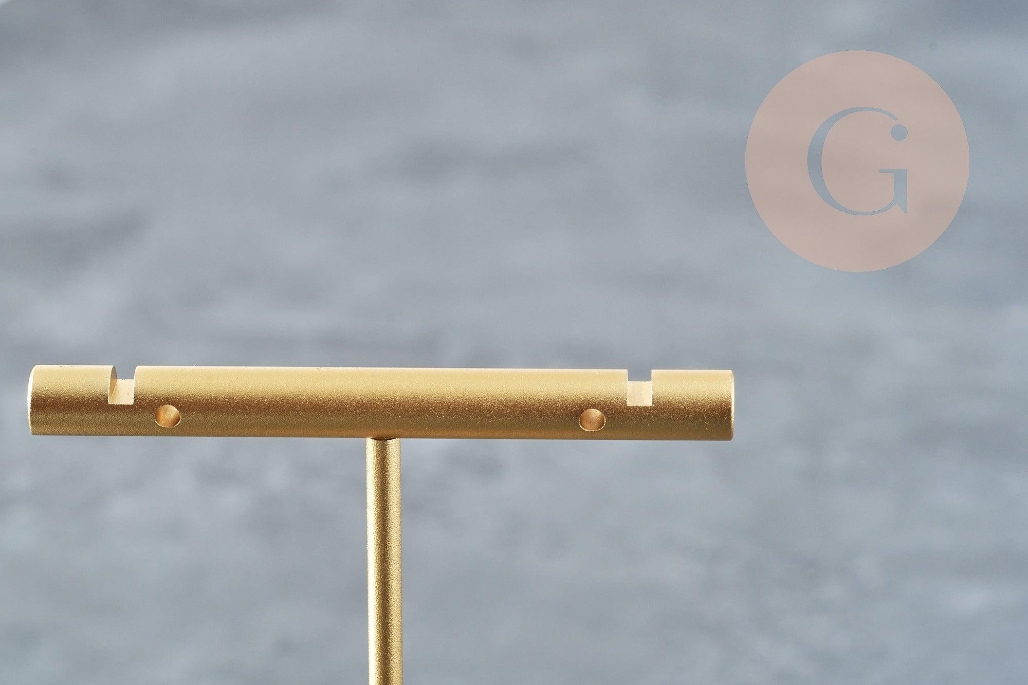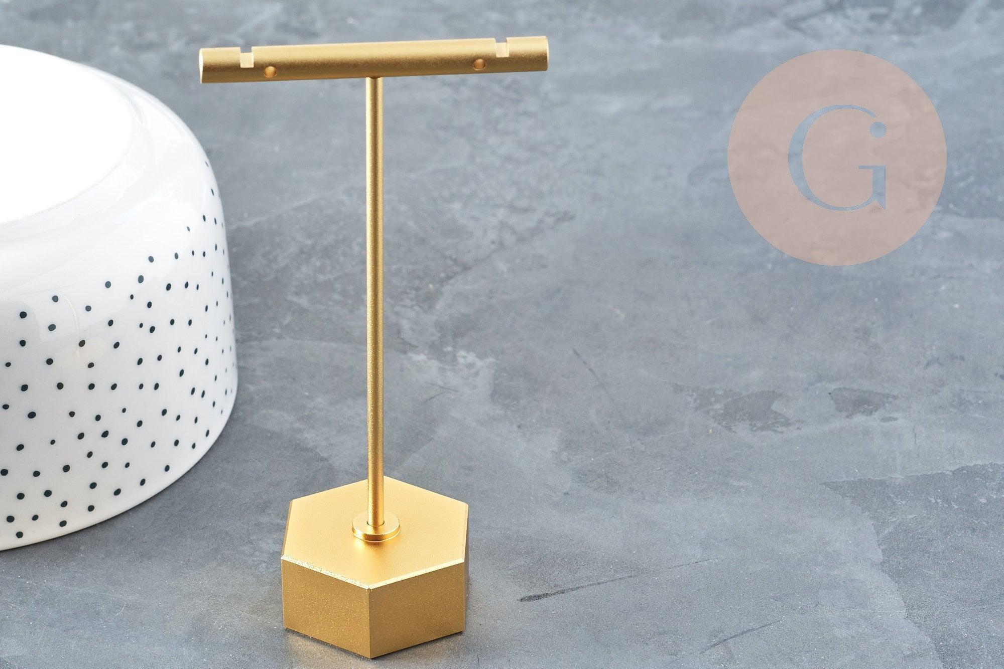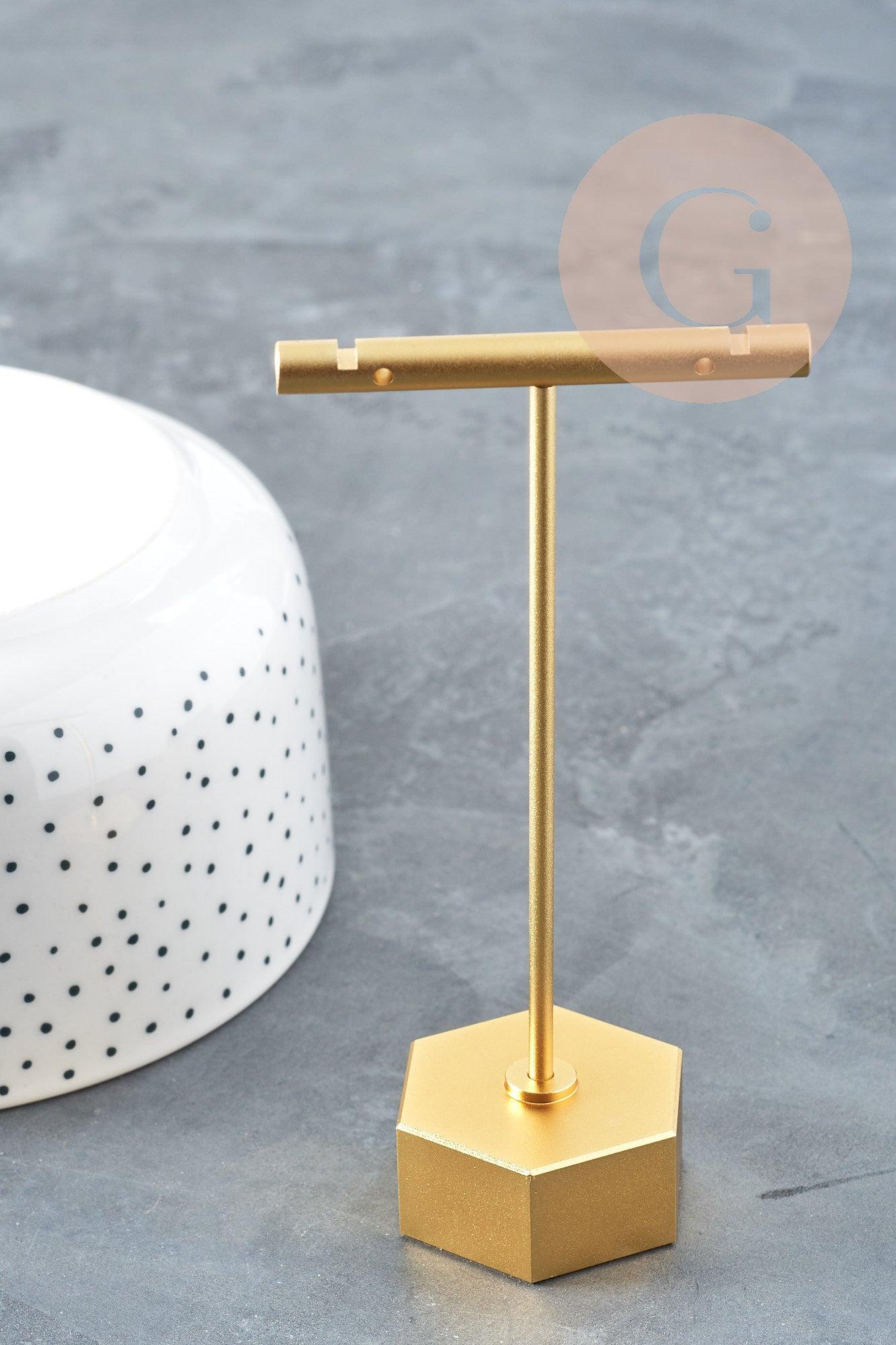 Para exhibir tus creaciones de fantasía hechas por ti mismo , elige este elegante y minimalista expositor de joyas de metal dorado .