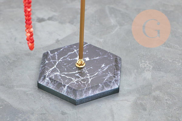 Expositor de joyas para pendientes de metal dorado con base de mármol de 26 cm, x1 (G10250)