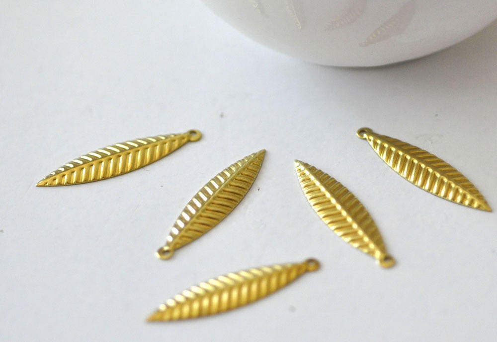 Encanto de hoja de latón crudo, suministros creativos, colgante sin níquel, creación de joyas, colgante de latón, 35 mm, individualmente Para crear magníficos collares, pendientes y pulseras, opte por estas lanzaderas en forma de hoja de latón dorado en bruto....