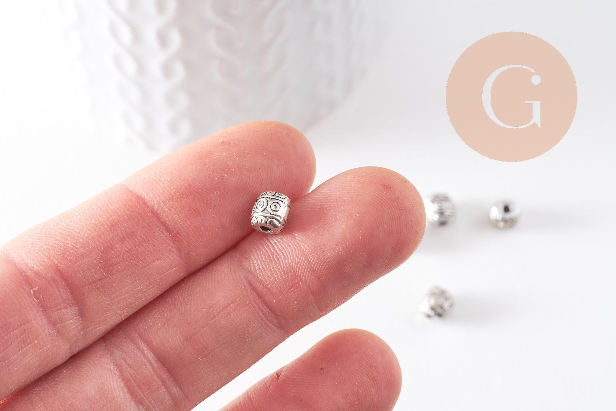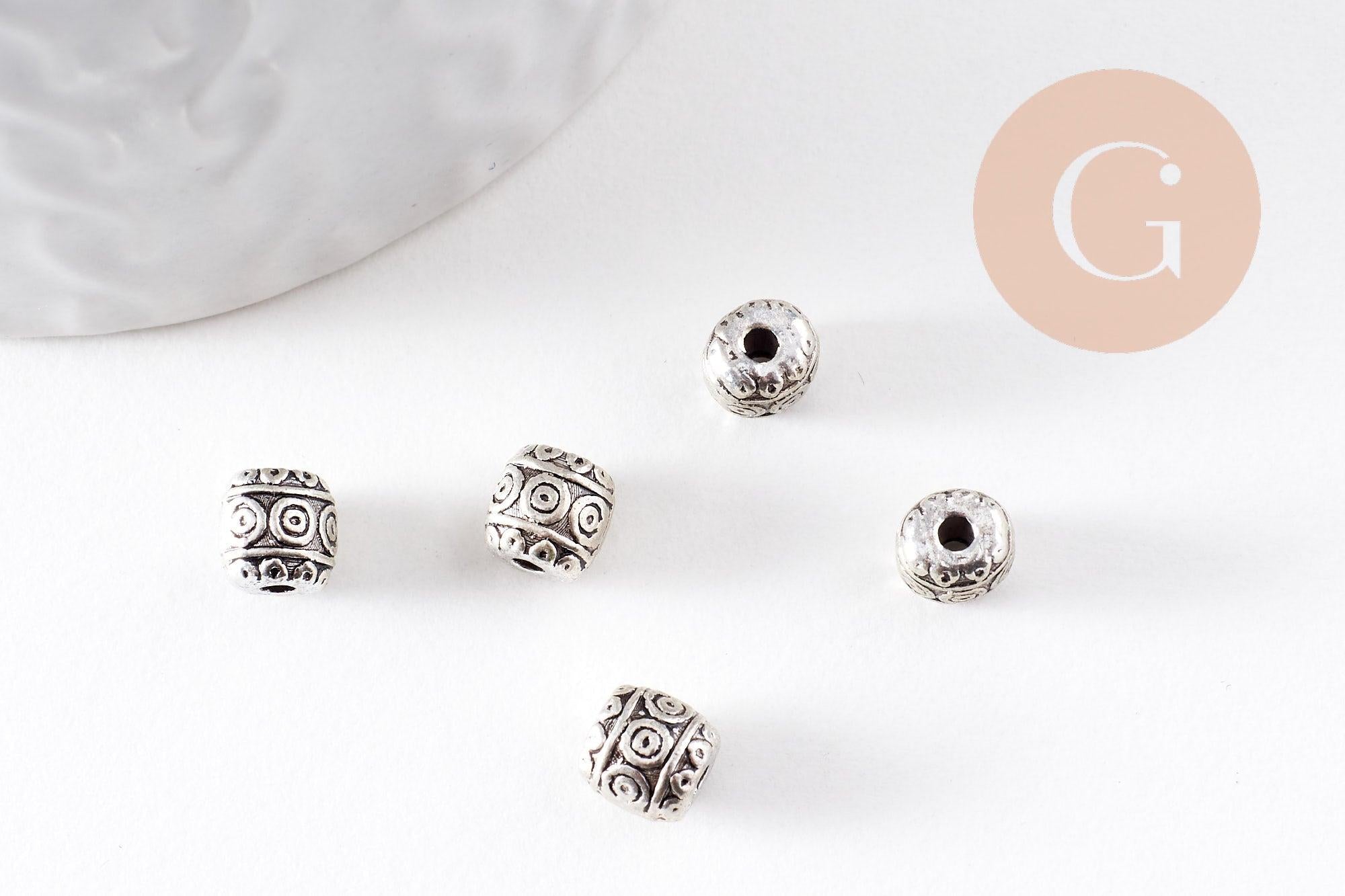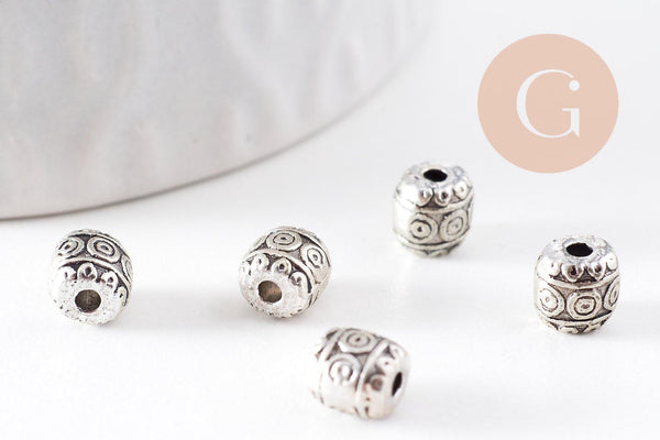 Un conjunto de 10 cuentas espaciadoras ovaladas en plata tibetana con un patrón grabado, para realizar hermosas joyas llenas de creatividad.