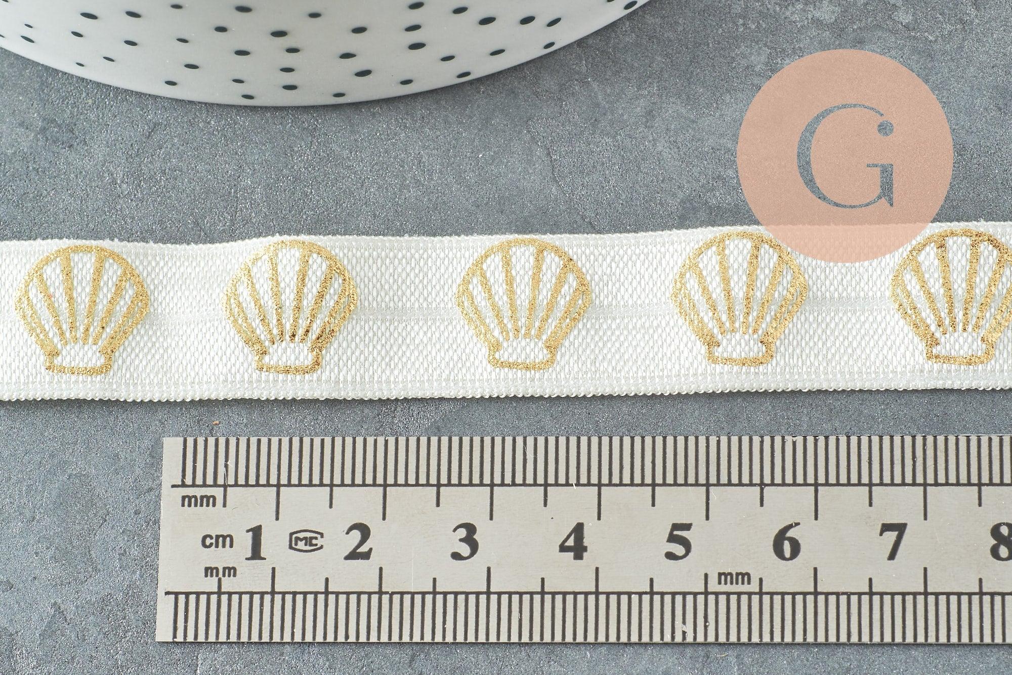 Esta cinta elástica plana y ancha con estampado de conchas será ideal para creaciones de costura DIY, personalización, ropa, así como para la creación de bisutería...