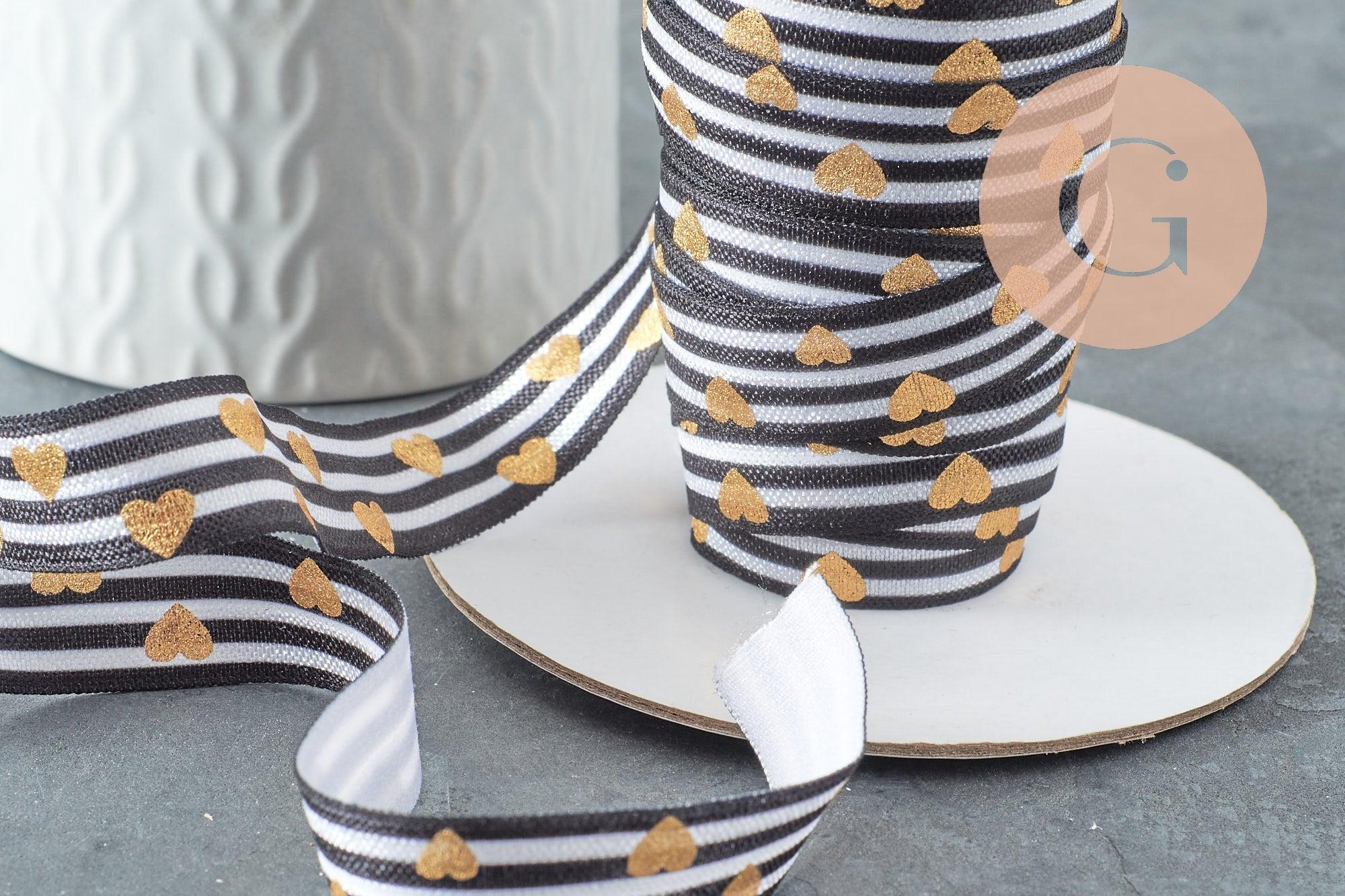 Cinta elástica de rayas con corazones dorados de EFJF, pulsera EVJF, cinta para bodas, scrapbooking, 16 mm, x1 metro (G1583)