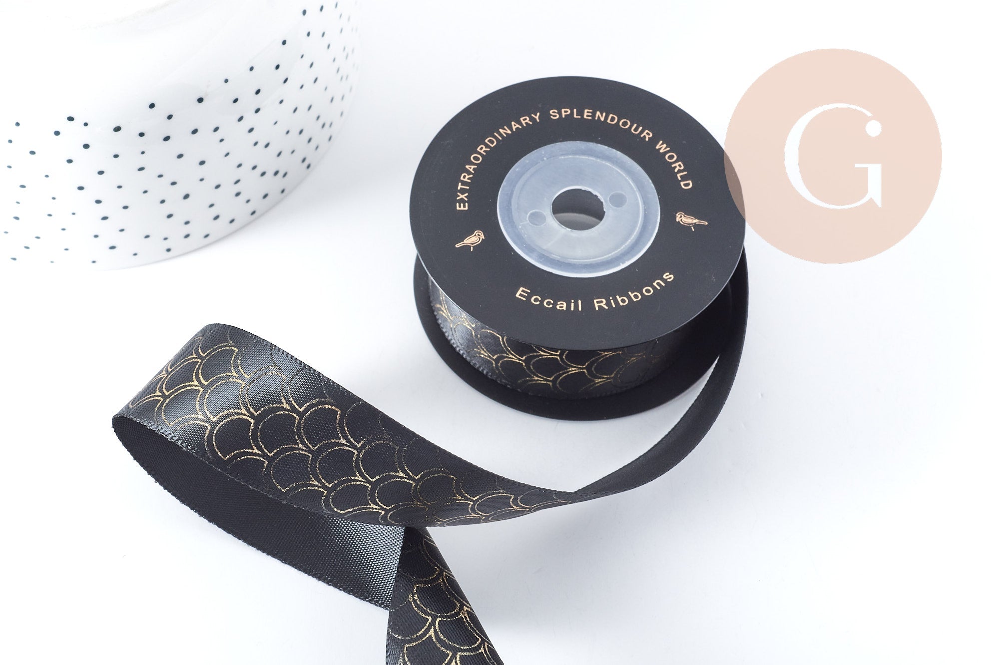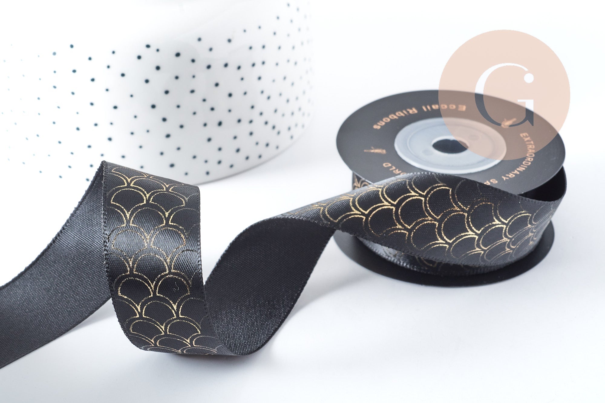 Una cinta de raso de poliéster negra para tus creaciones de scrapbooking, tus creaciones de boda. También puedes usarlo para hacer un gran lazo en un paquete de regalo .