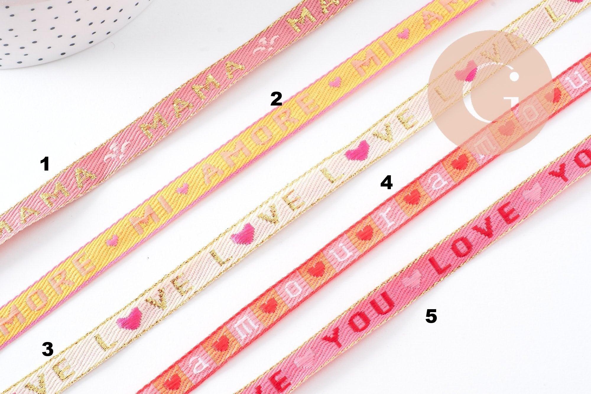 Cinta con texto "Love" de 10 mm, cinta bordada de calidad para coser o hacer joyas, x1 metro (G10418)