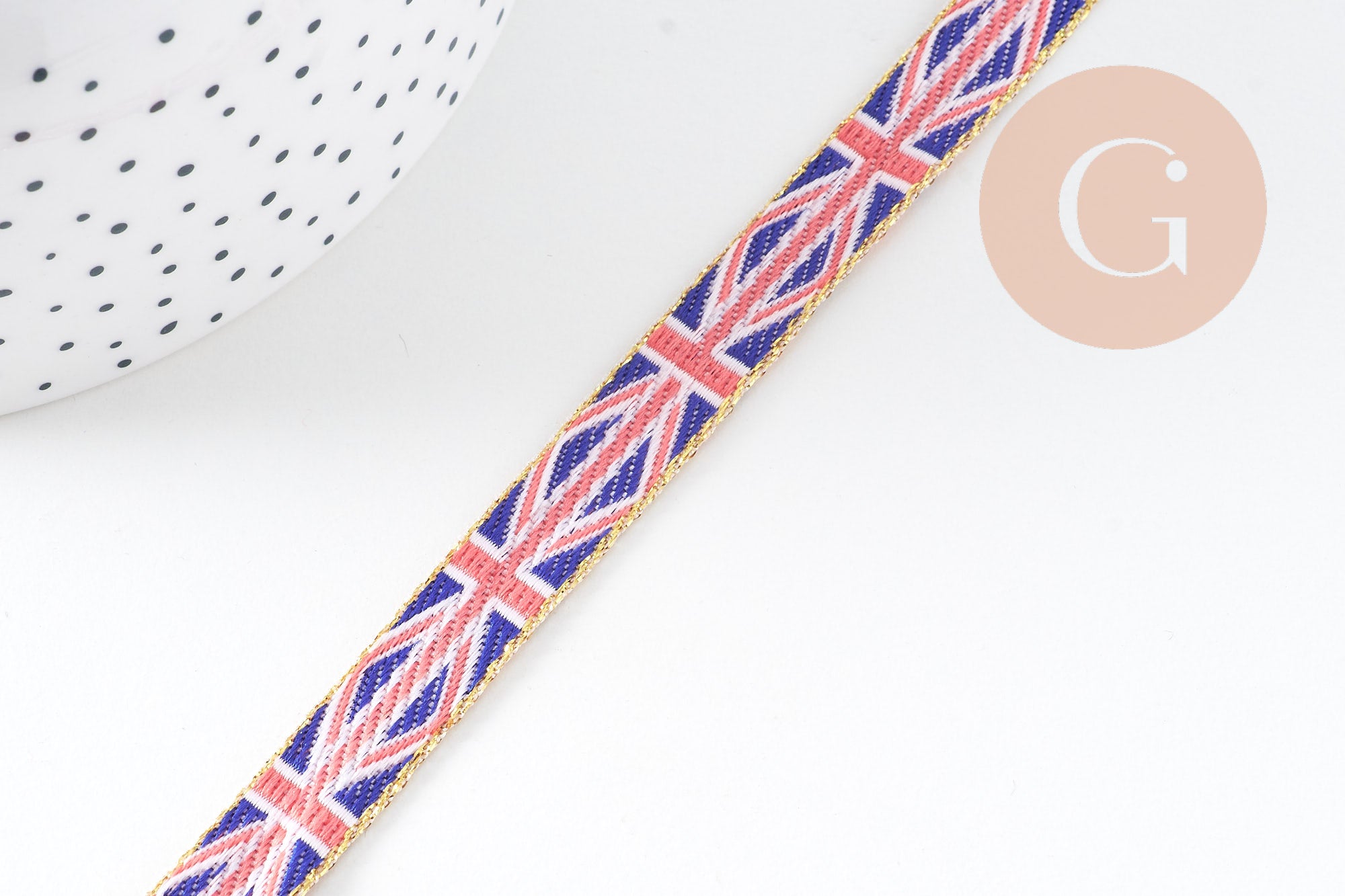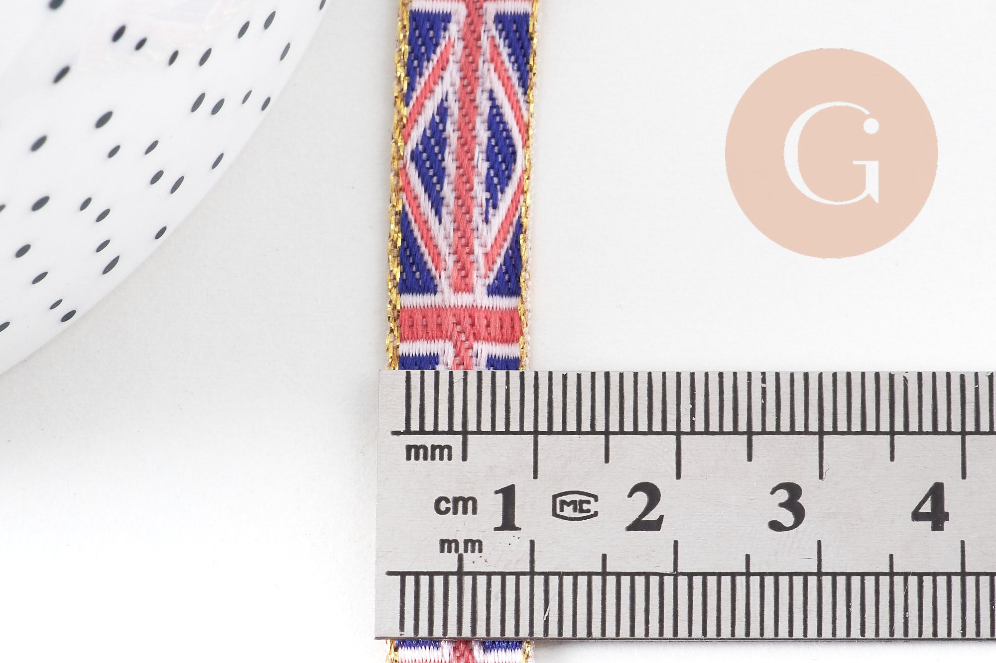 Ruban texte drapeaux pays 10mm, un ruban brodé de qualité pour travaux de couture ou création de bijoux, x1 mètre (G10831)