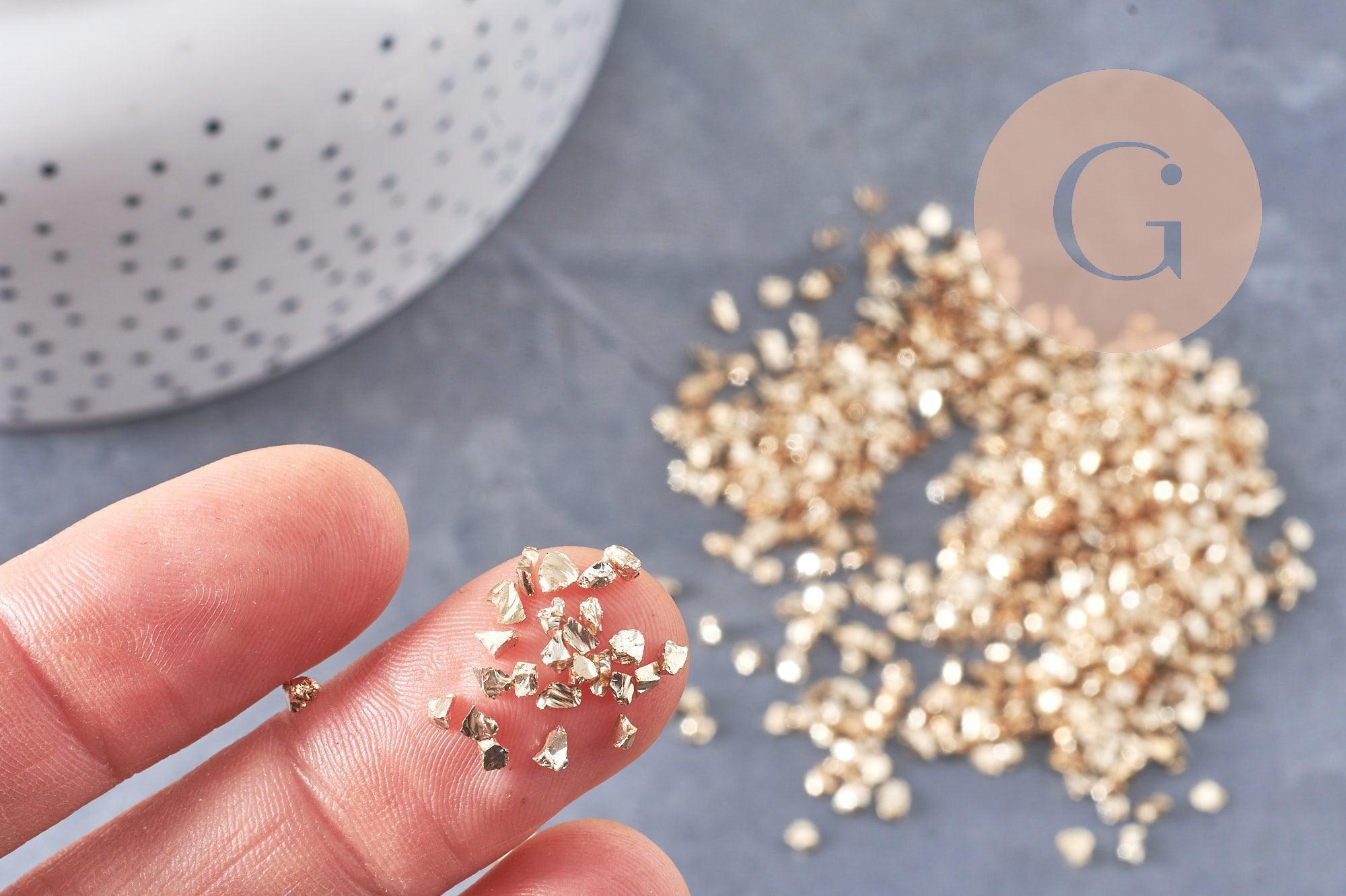 Arena de vidrio dorado , suministros creativos, chips minerales, vidrio coloreado, vidrio dorado, piedra de vidrio, creación de joyas, arena para acuarios, bolsa de 10 gramos