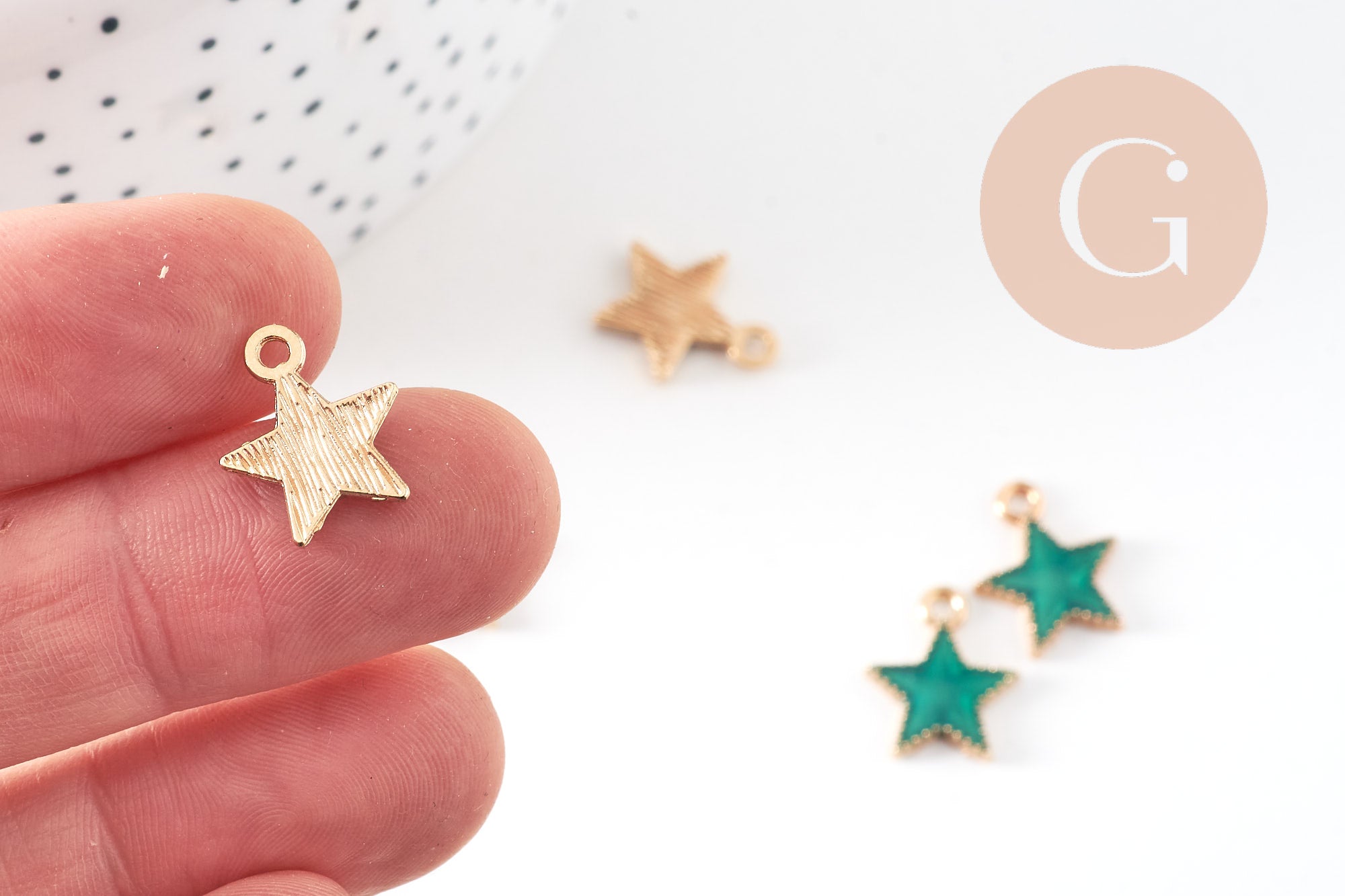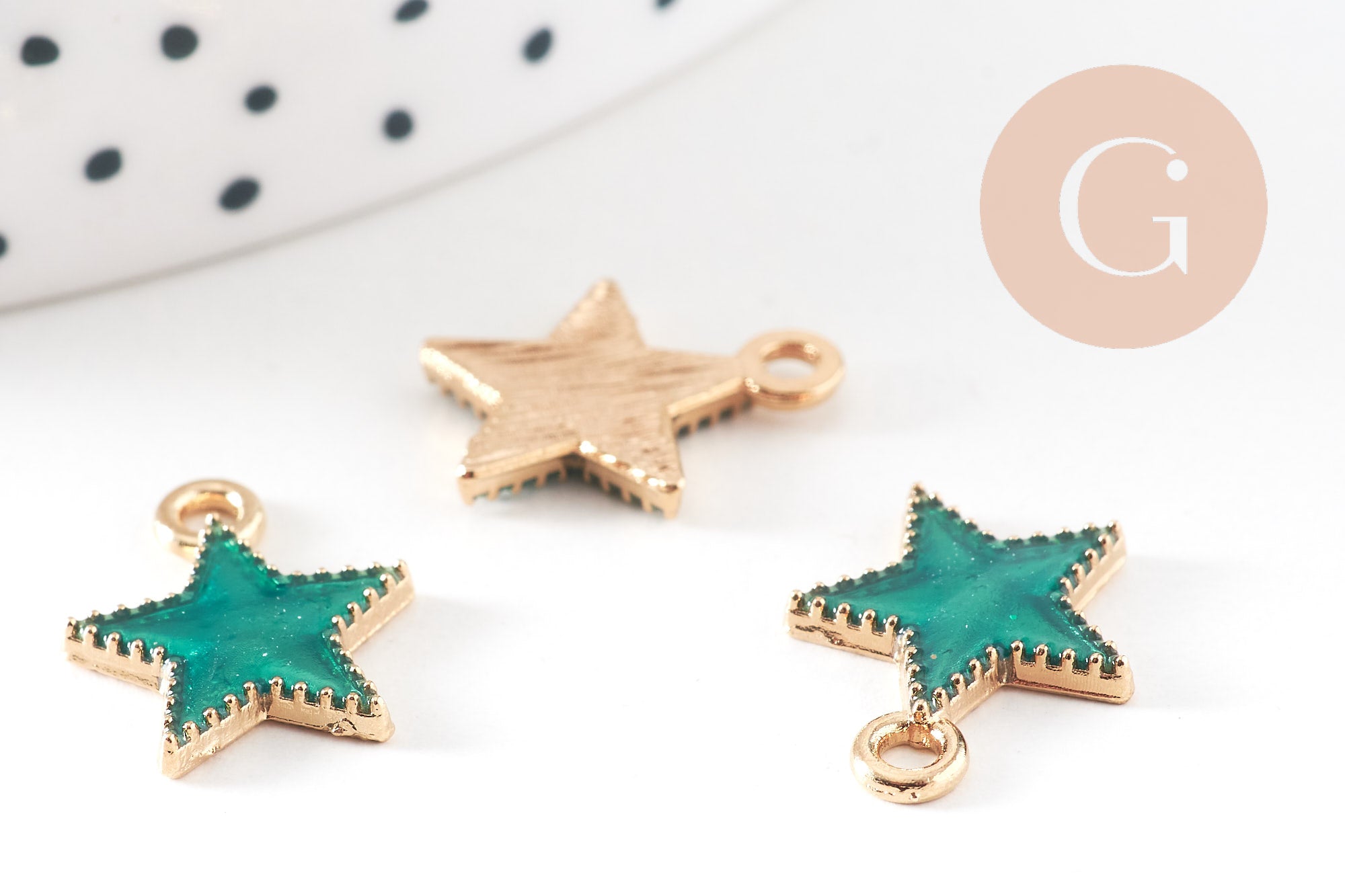 Colgante estrella de zamac bañado en oro con resina verde, 15 mm, colgante bañado en oro para creación de joyas, x5 (G6099)