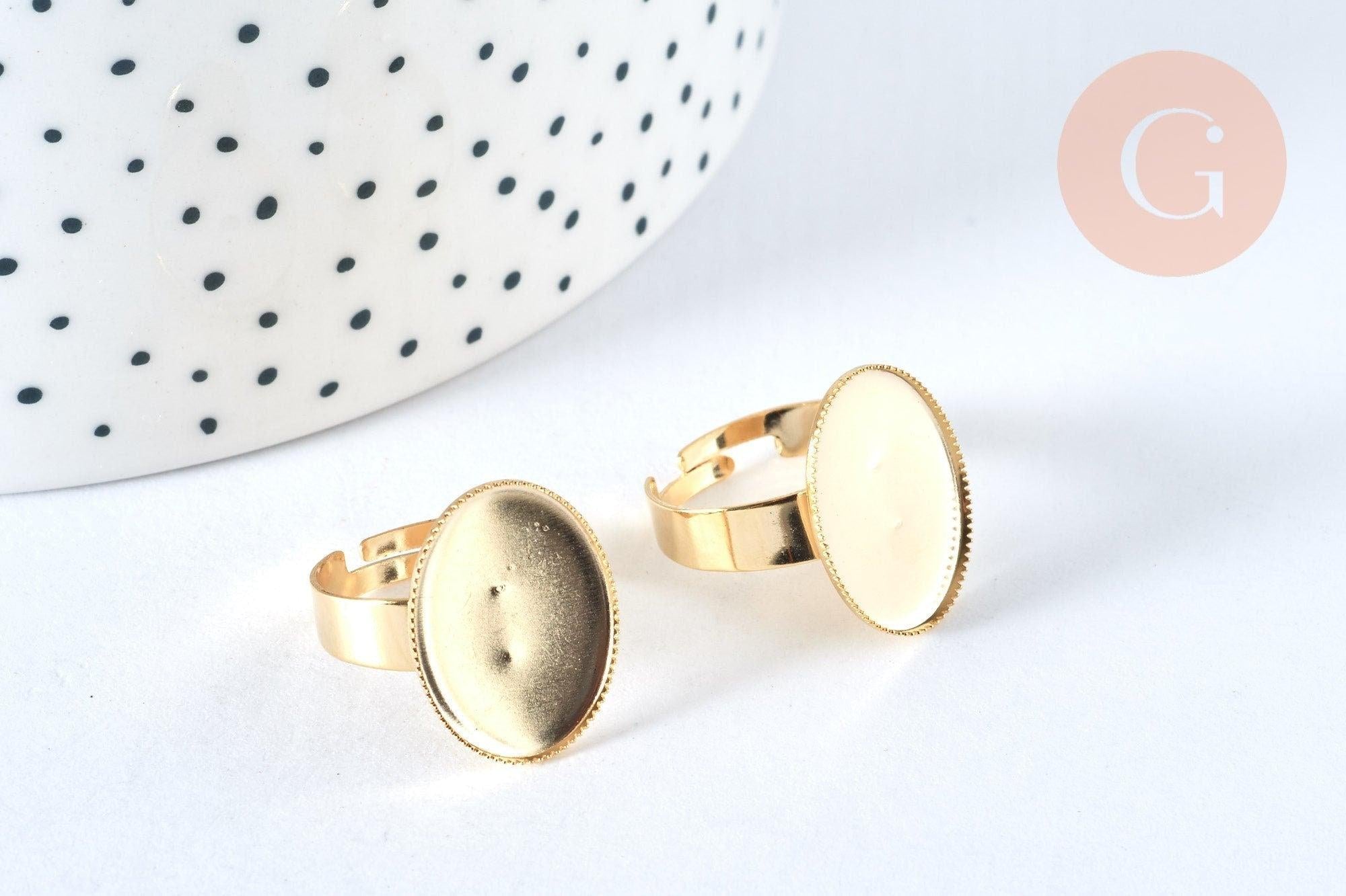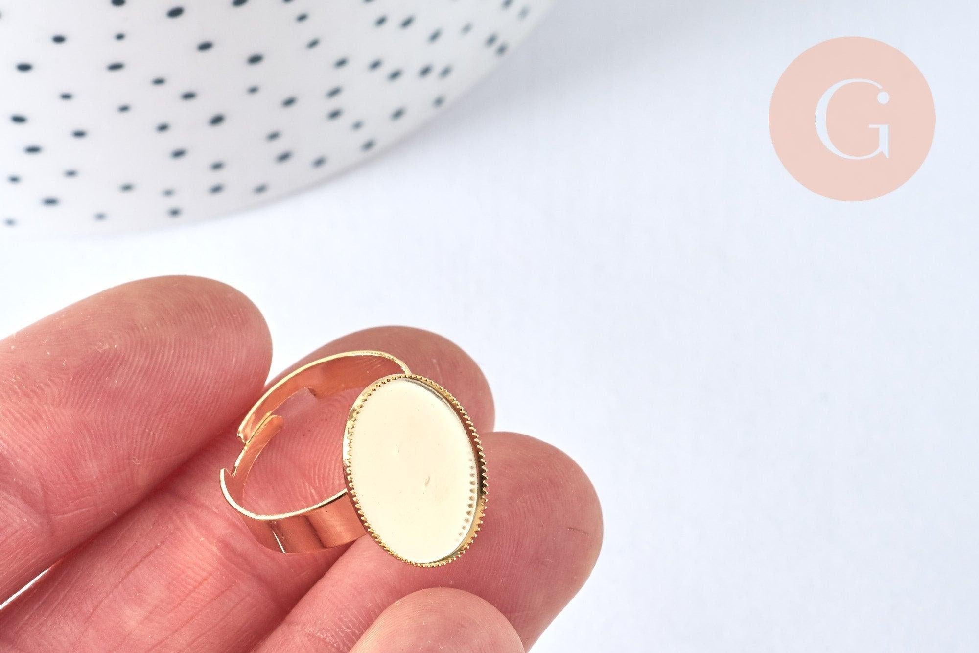 Soporte de anillo ajustable soporte cabujón ovalado 18x13 mm acero dorado x1 (G6801)