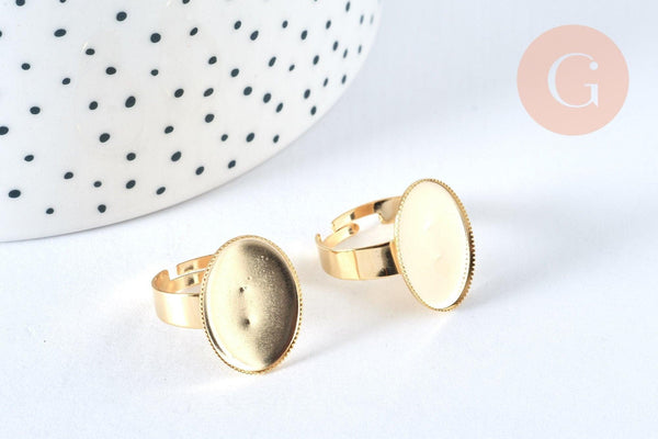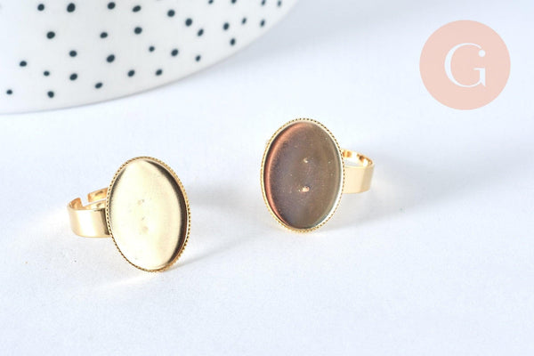 Support bague réglable support cabochon ovale 18x13mm acier doré x1 (G6801)