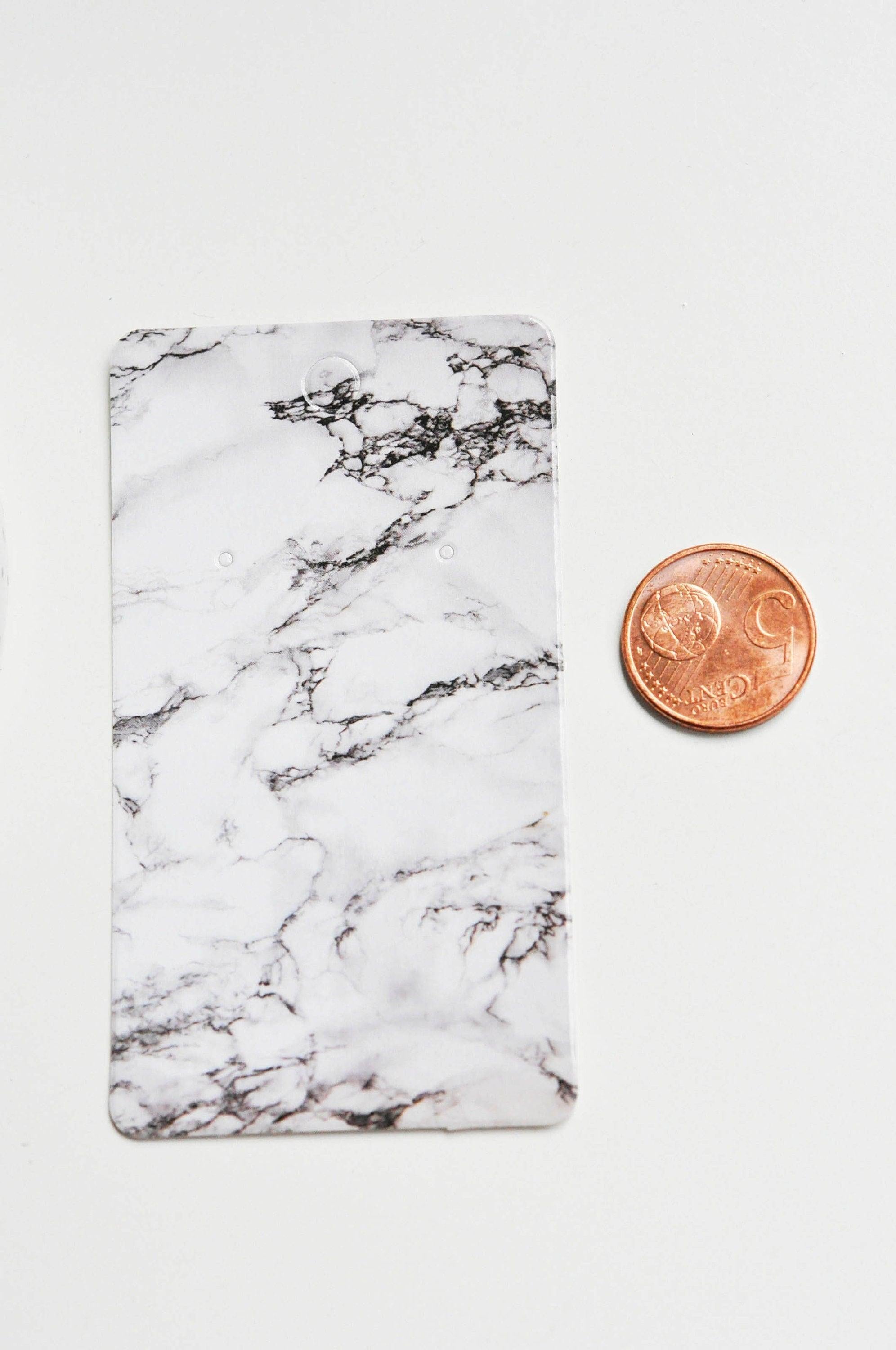 Un conjunto de portahebillas de cartón decorados con un patrón de mármol, para decoración de fiestas o pequeños regalos de boda.